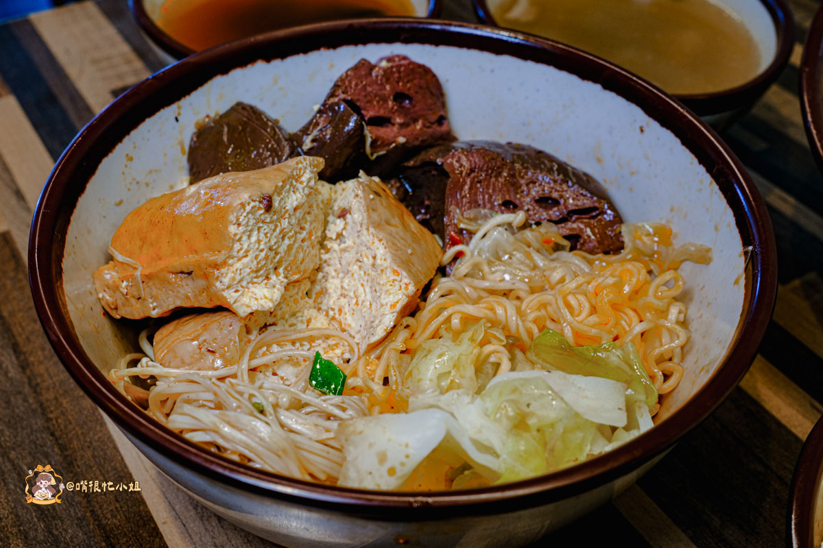 臭豆腐外層吸滿紅油、裡面軟嫩,湯汁進孔的瞬間整個爆香;鴨血厚實滑順,切面發亮、入味又多汁。搭配高麗菜、金針菇、一起滾煮,辣中帶甜、越吃越順口。最後把王子麵丟進鍋裡吸湯,整鍋的麻辣香都鎖進麵裡,是那種會讓人上癮的味道。