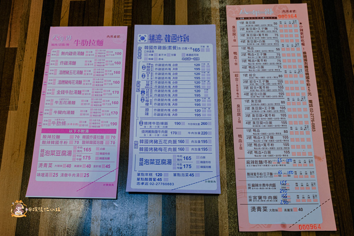 八年得香辣臭豆腐鴨血專門店的菜單其實超級豐富,不只麻辣臭豆腐、鴨血鍋,還橫跨台式、韓式、甚至牛筋拉麵。可以說是一間「隱藏在東區巷弄裡的麻辣小吃綜合體」。