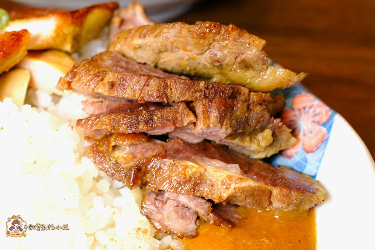 牛肉切成厚薄適中的片狀,邊緣帶點油脂,咬下去先是表面的微酥、接著是軟嫩的纖維與油香;不是那種軟到一夾就散,口感保有彈性,搭配日式咖哩的酸甜感,層次剛好。店家處理肉品會先舒肥再煎上色,難怪嫩而不碎、又吃得到焦香。