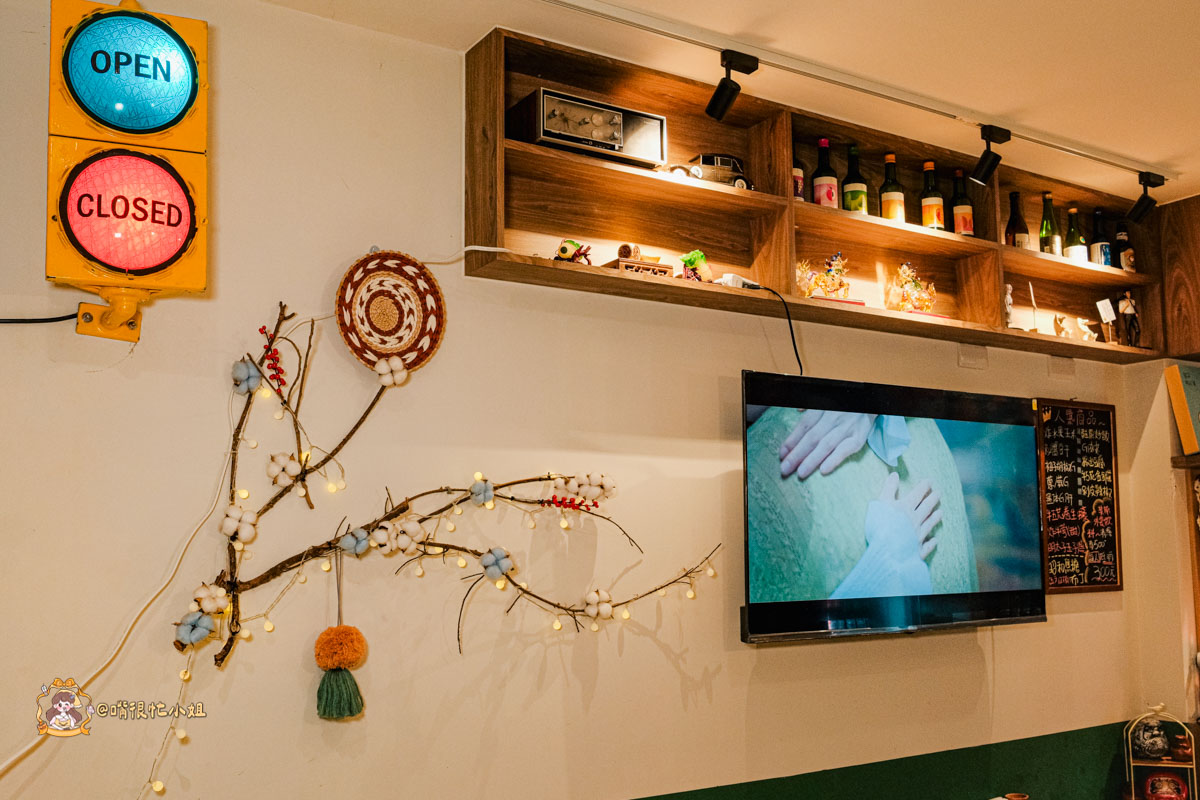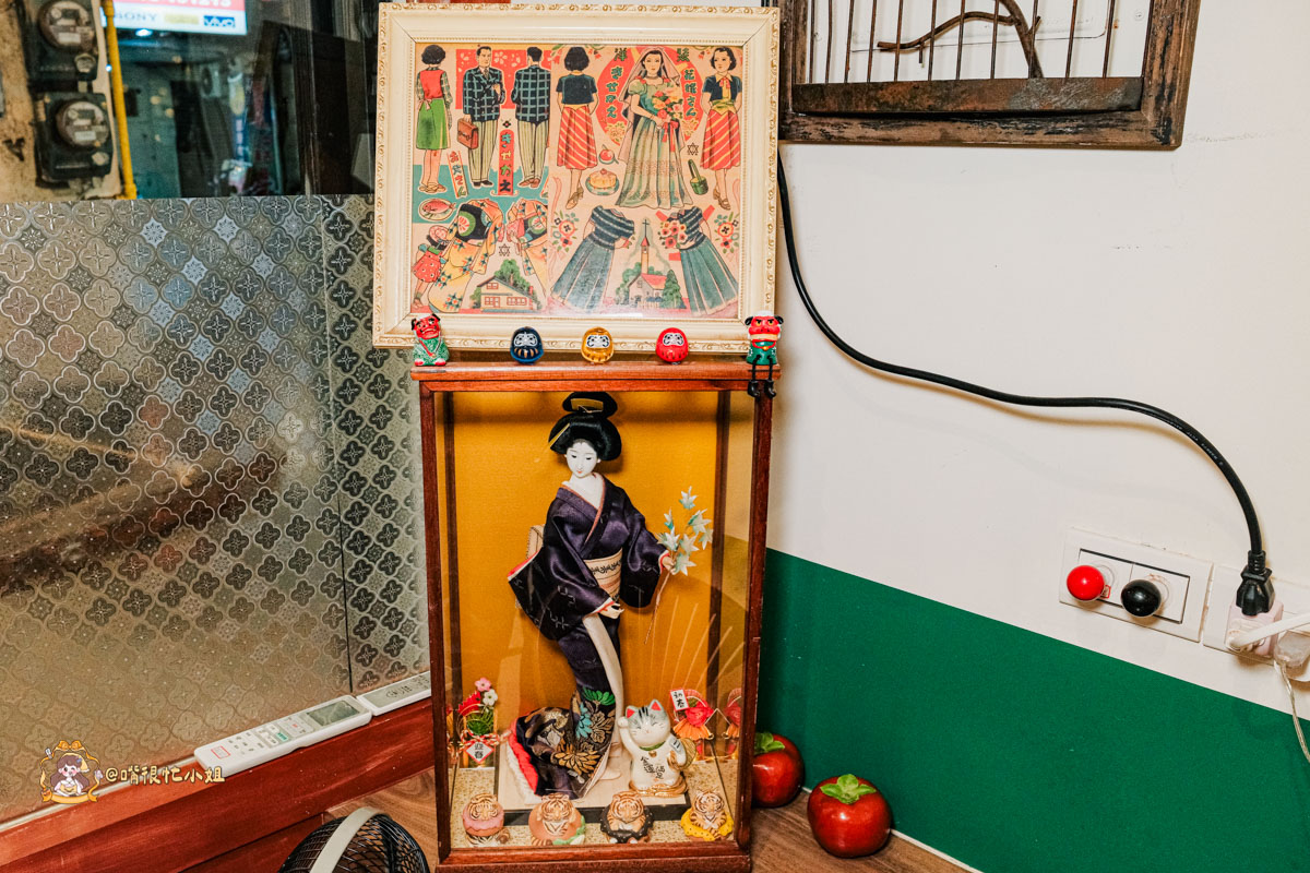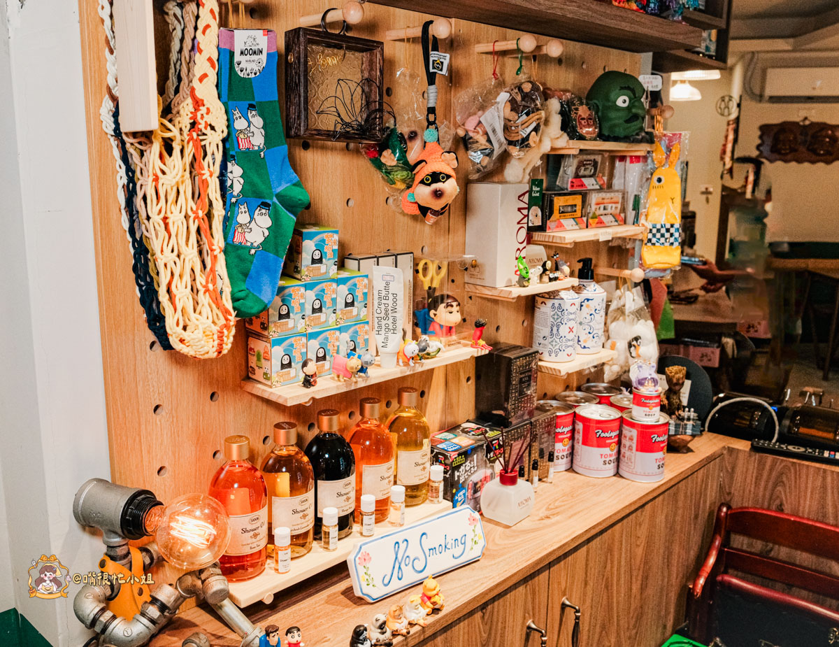每個角落都能看到店家用心佈置的小巧思。像是櫃子上排滿復古玩具、日系小公仔,還有各式威士忌酒瓶與模型;整體空間乾淨、明亮又有故事感,很適合三五好友聚會,也適合一個人來放空小酌。