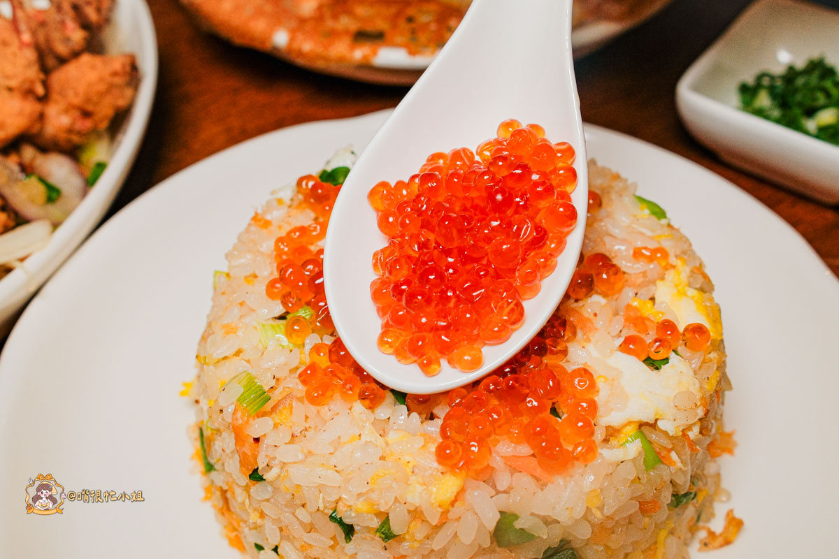 滿滿的鮭魚片與鮭魚卵堆到差點看不到飯。每一口都有魚卵爆開的鹹香,鍋氣香氣撲鼻,米飯粒粒分明、吃起來乾爽不膩。那種「炒得剛好焦香」的口感,是其他地方難找到的層次;是近期吃到最好吃的炒飯!