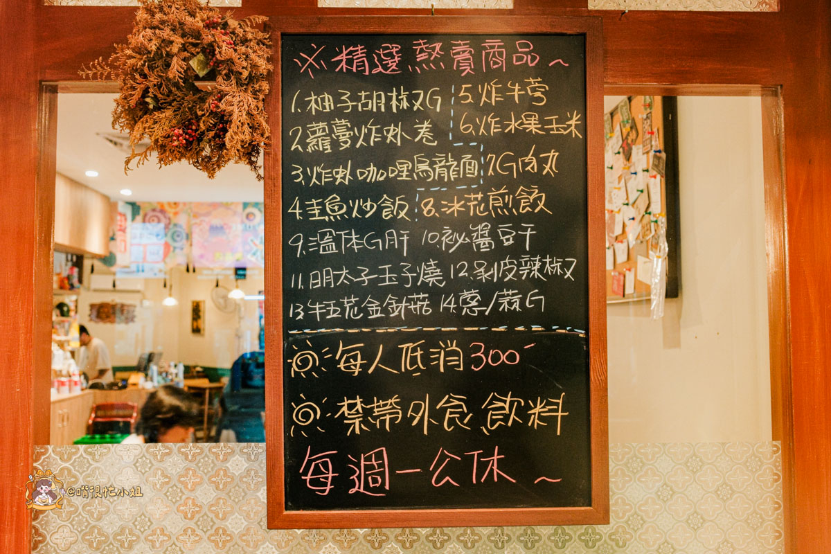 特別的是,牆上擺著黑板手寫菜單,每天會更新「精選熱賣商品」,像是炸水果玉米、魚子醬炸蝦卷、鮭魚炒飯這些都是人氣必點。這種手寫黑板搭配溫黃燈光,讓整個用餐空間多了點「回家吃飯」的溫度。