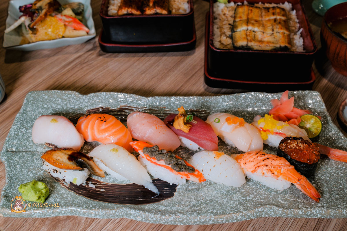 這份壽司盤看起來真的超精緻!鮭魚、鮪魚、干貝、甜蝦、烏賊到海膽,每一貫都很新鮮。特別是鮭魚肚入口即化。干貝甜度高,海膽柔滑,連壽司飯都帶著微微甜味;完全不輸高價壽司店。