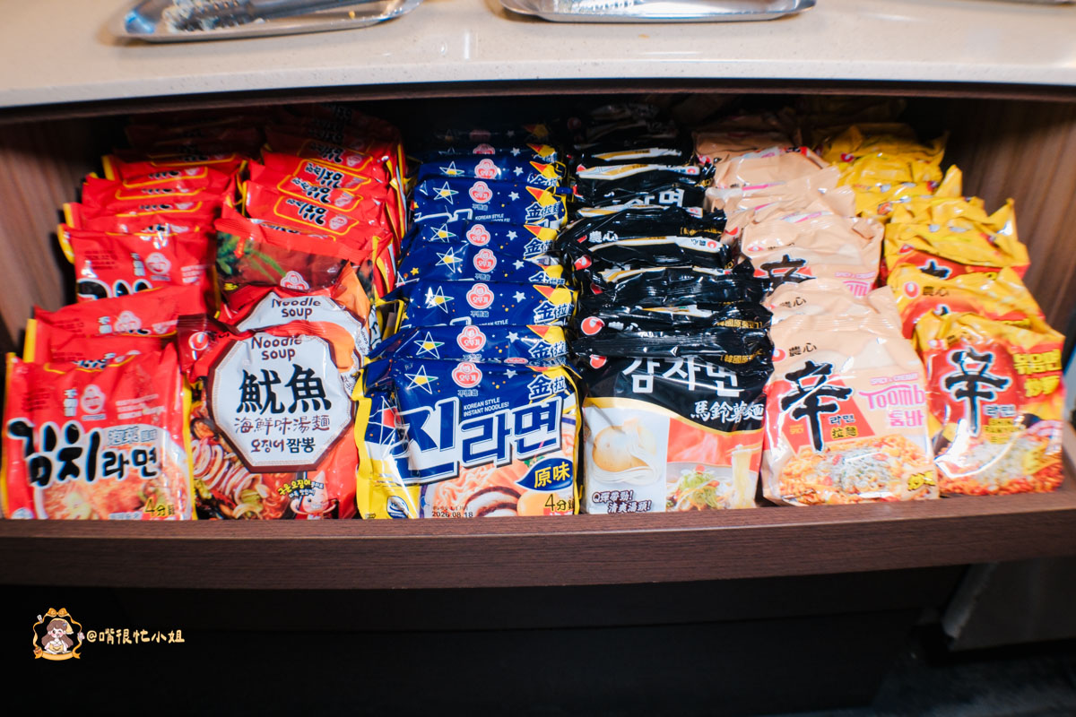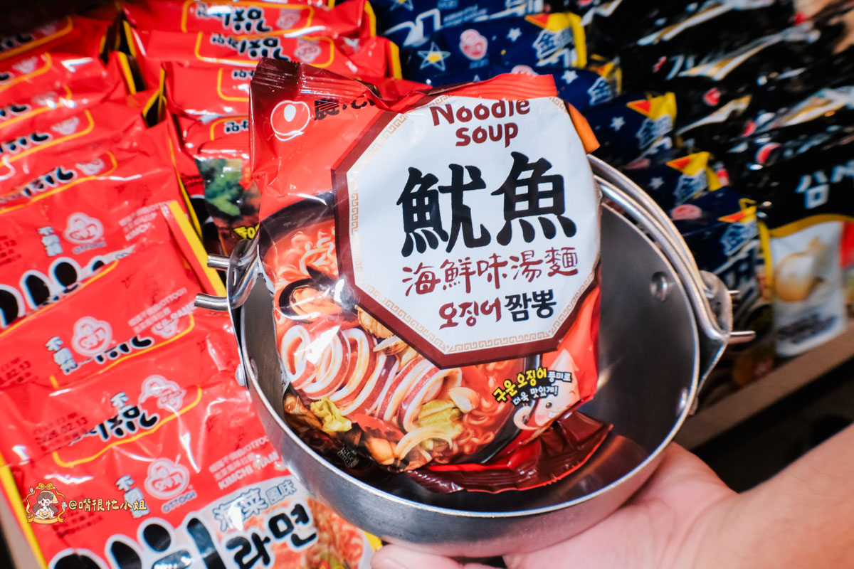 韓國泡麵種類多到像開雜貨鋪,辛拉麵、真拉麵、馬鈴薯麵、海鮮麵通通排滿滿。