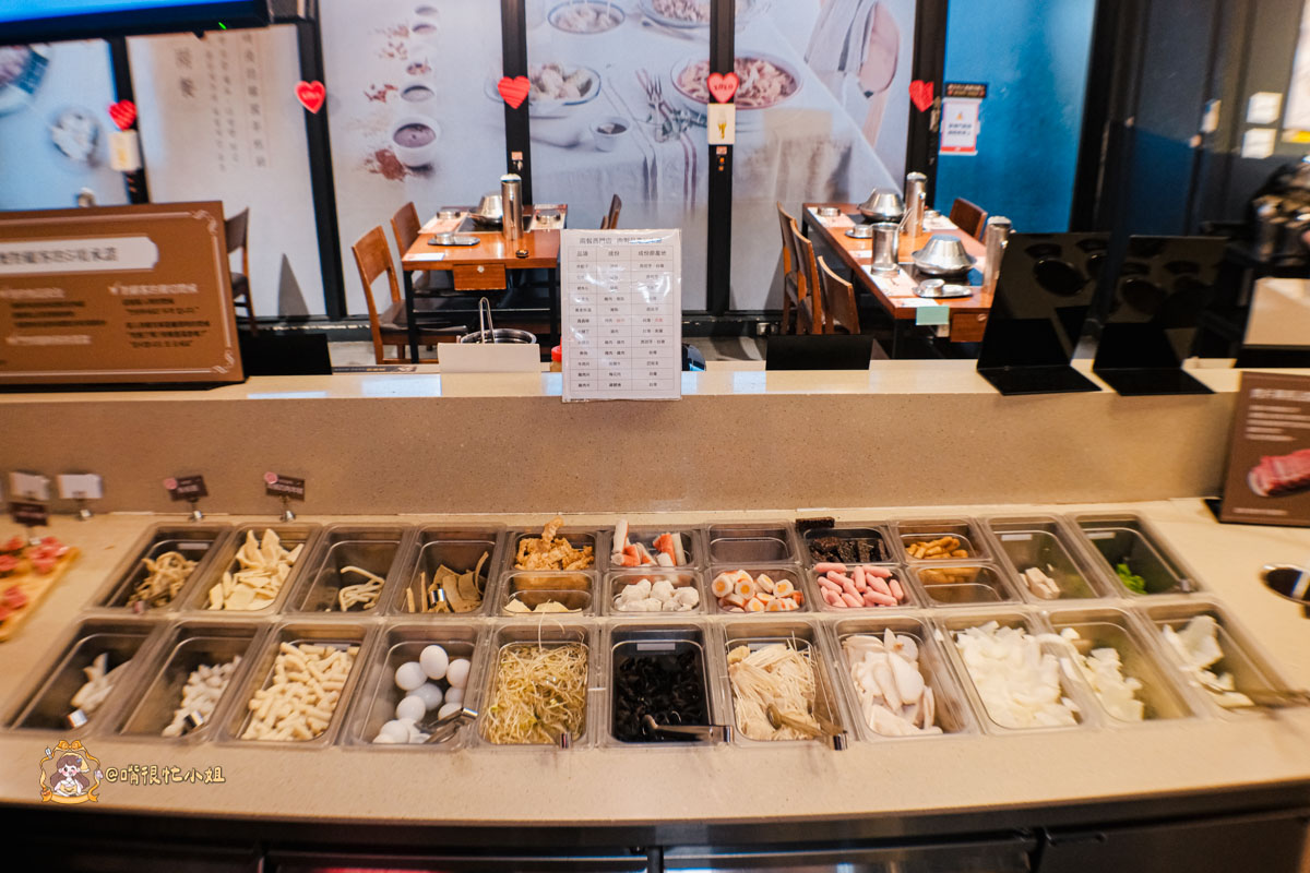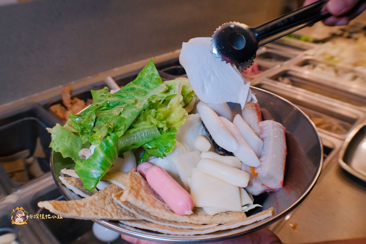 整排食材看起來超壯觀,從蔬菜、菇類到豆皮、豆腐、魚板、韓國年糕一應俱全。