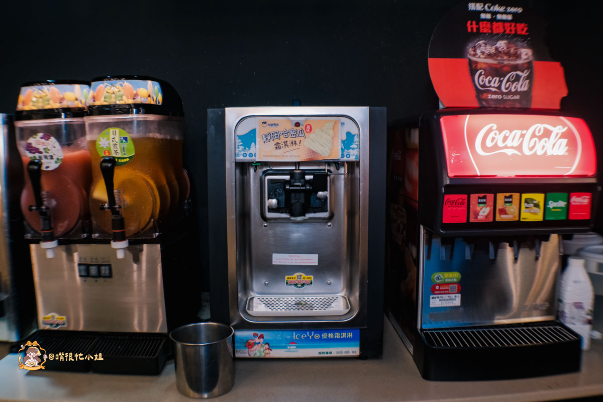 飲料機種類有汽水、果汁、無糖綠茶。甜點則是冰淇淋,吃完一輪重口味後剛好降火。