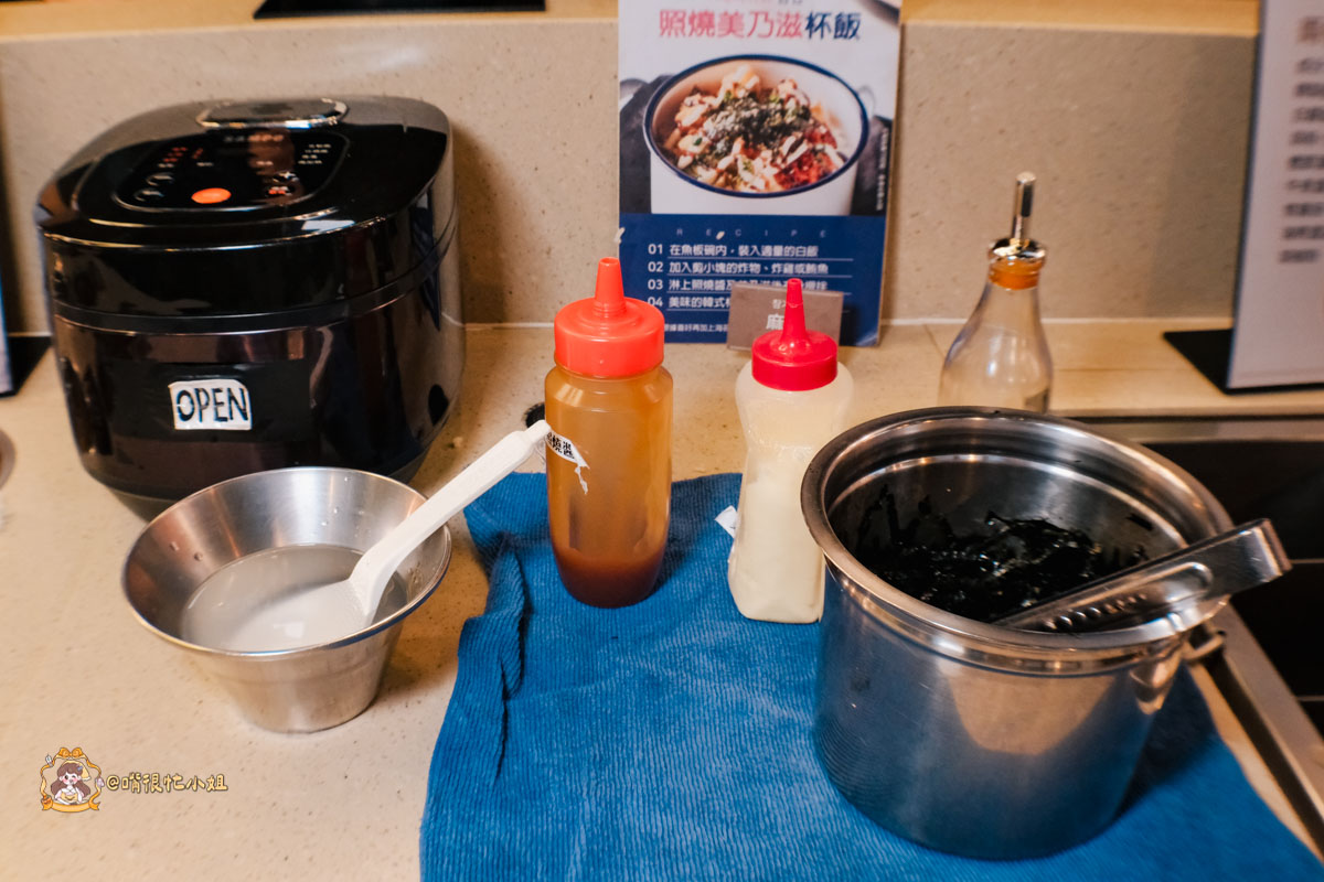 想自己做「麻油海苔飯糰」或「收湯炒飯」的人,一定要來這區報到。有白飯、海苔絲、照燒醬、沙拉醬、香油,旁邊還有圖解教學,照著步驟做保證不踩雷。我每次都會加多一點海苔和麻油。