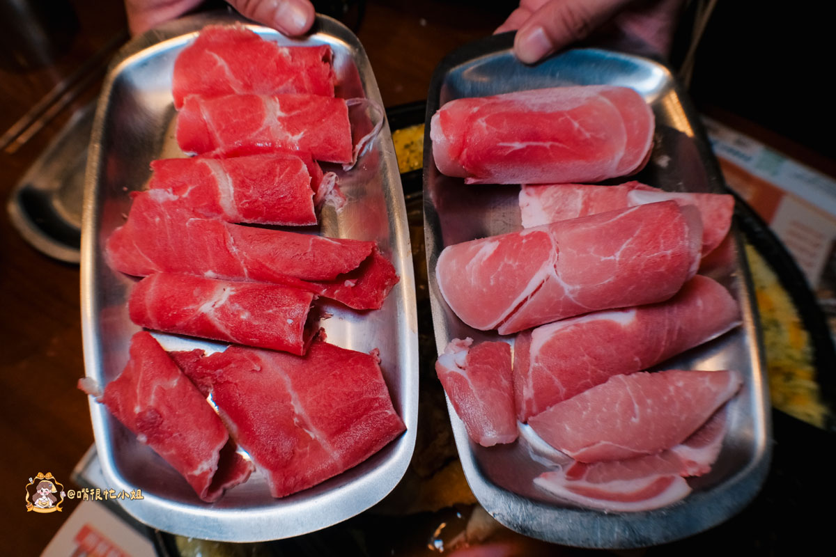 肉類以豬、牛為主,切得厚薄剛好,下鍋涮一下就熟,吸附辣湯後香氣十足。搭配起司一起吃是靈魂組合。