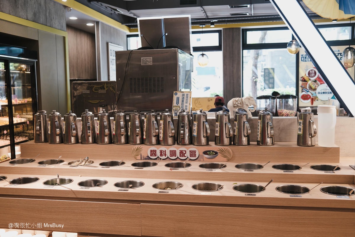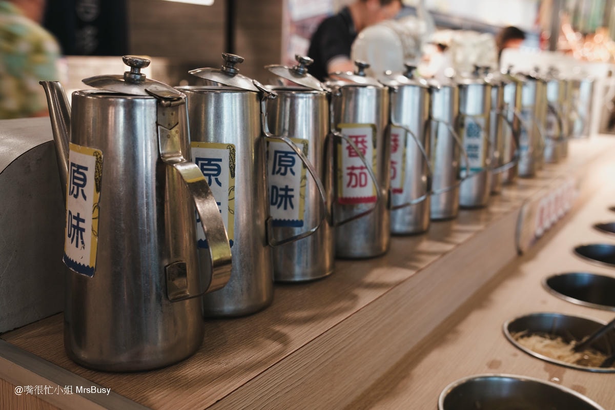 醬料區應有盡有,從基本的蒜泥、蔥花、沙茶、辣椒到日式胡麻醬、泰式酸辣醬通通有。湯底也放在這邊,可以自行取用添加。