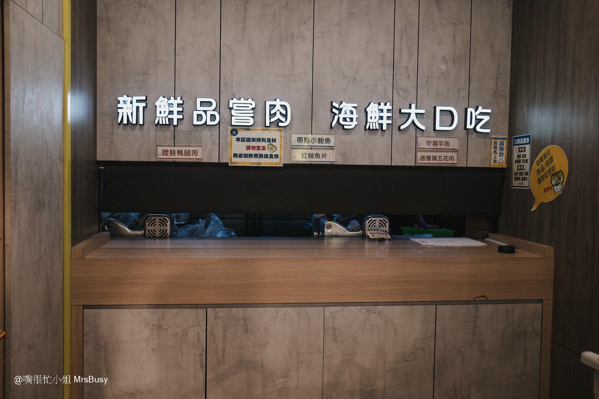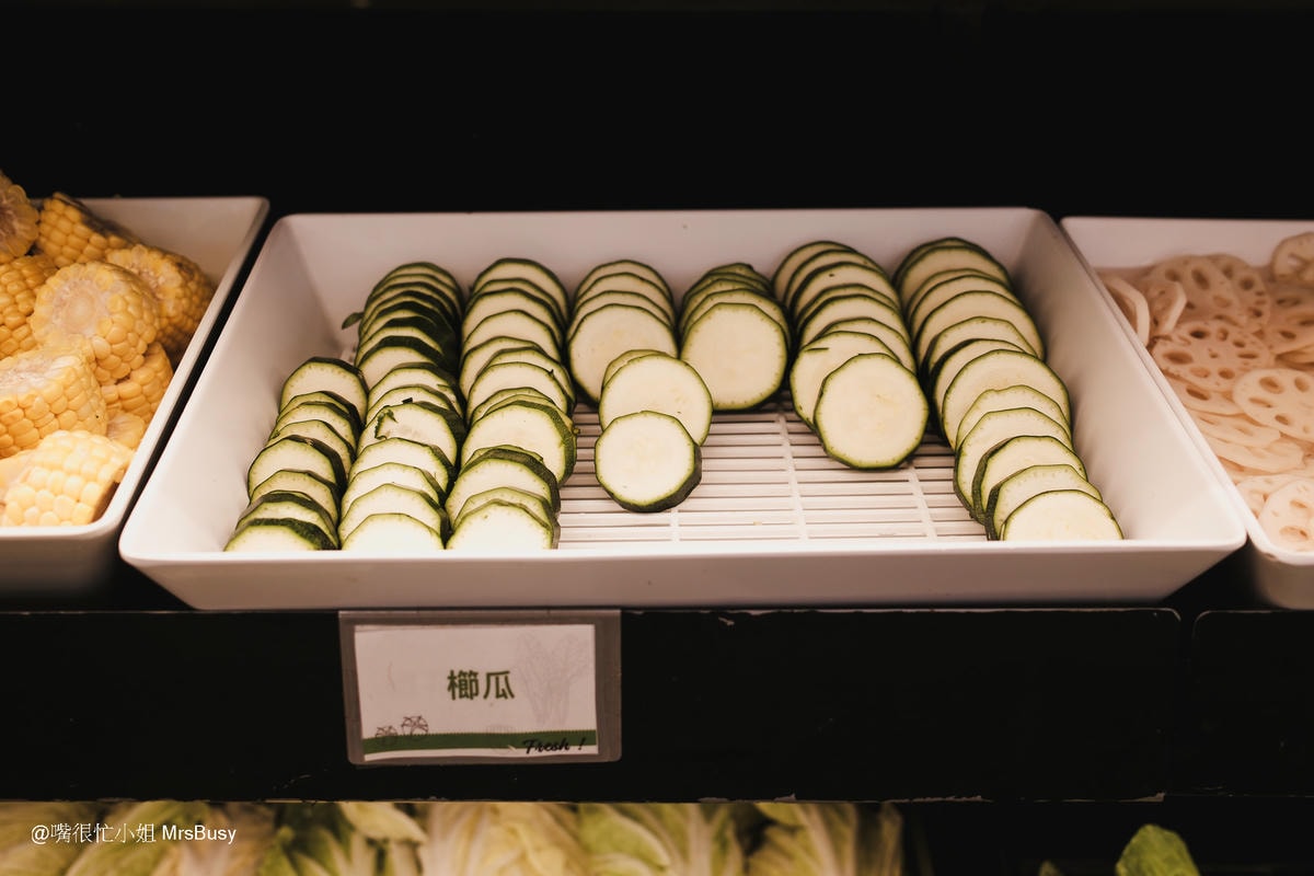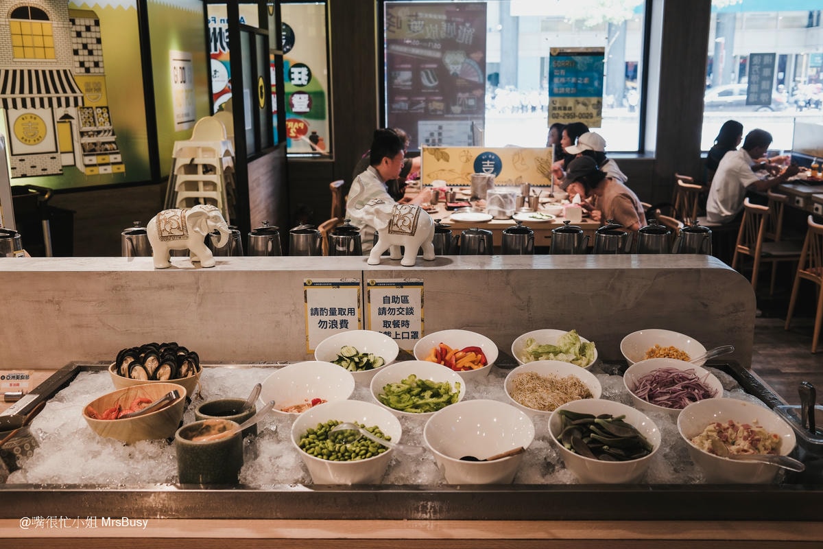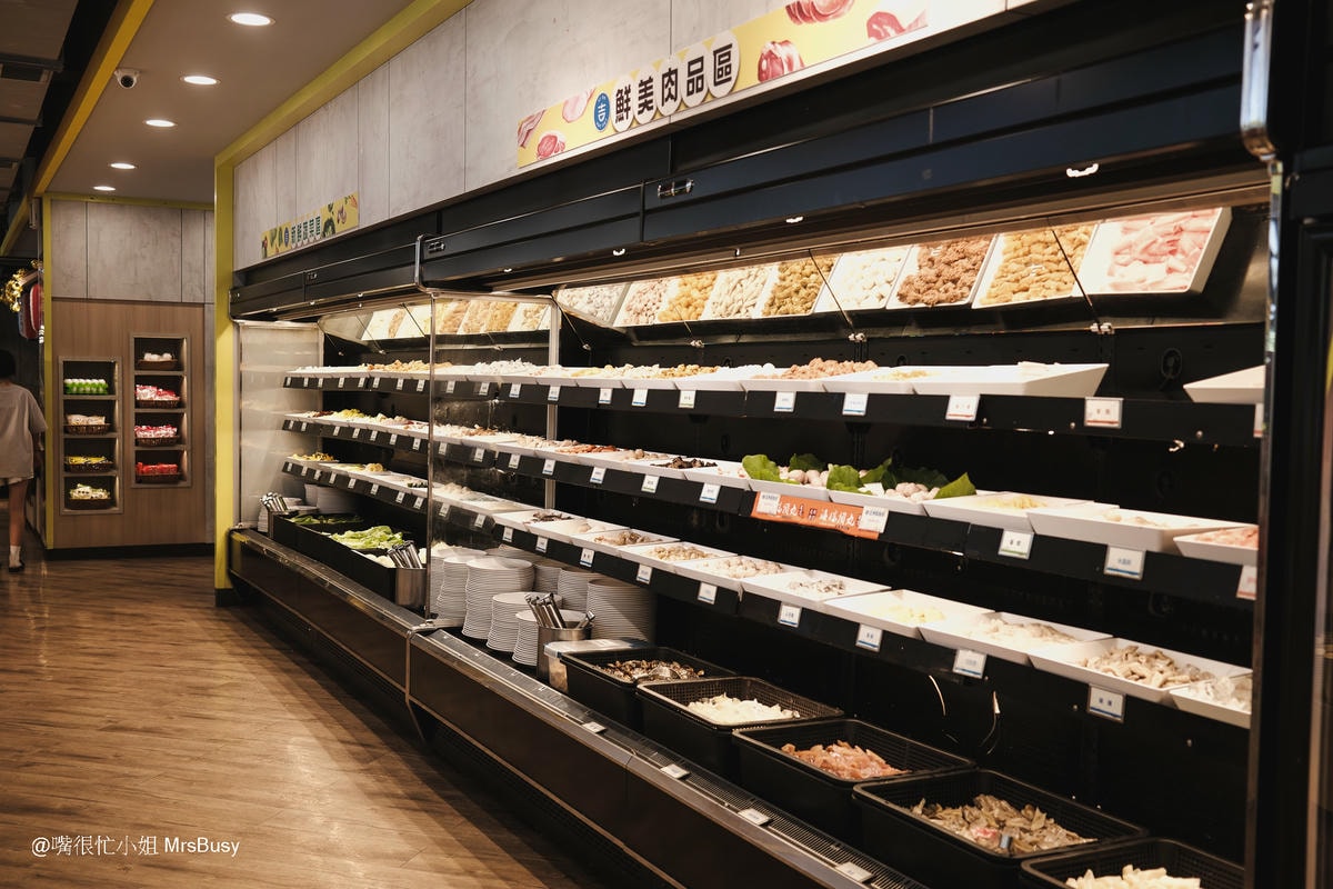 蔬菜與火鍋料超級齊全!一整面牆全是各式時蔬與菇類,另一面牆則是滿滿火鍋料與蛤蜊、蝦子、小章魚等可無限取用,海鮮控會很愛!其中蛤蜊很新鮮大顆,補得也快,感覺吃個兩大杓就可以回本XD