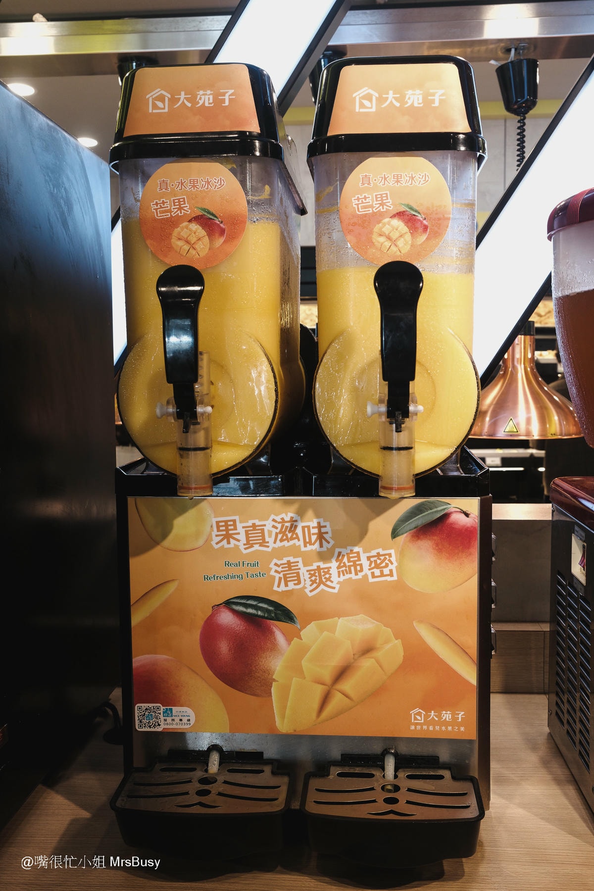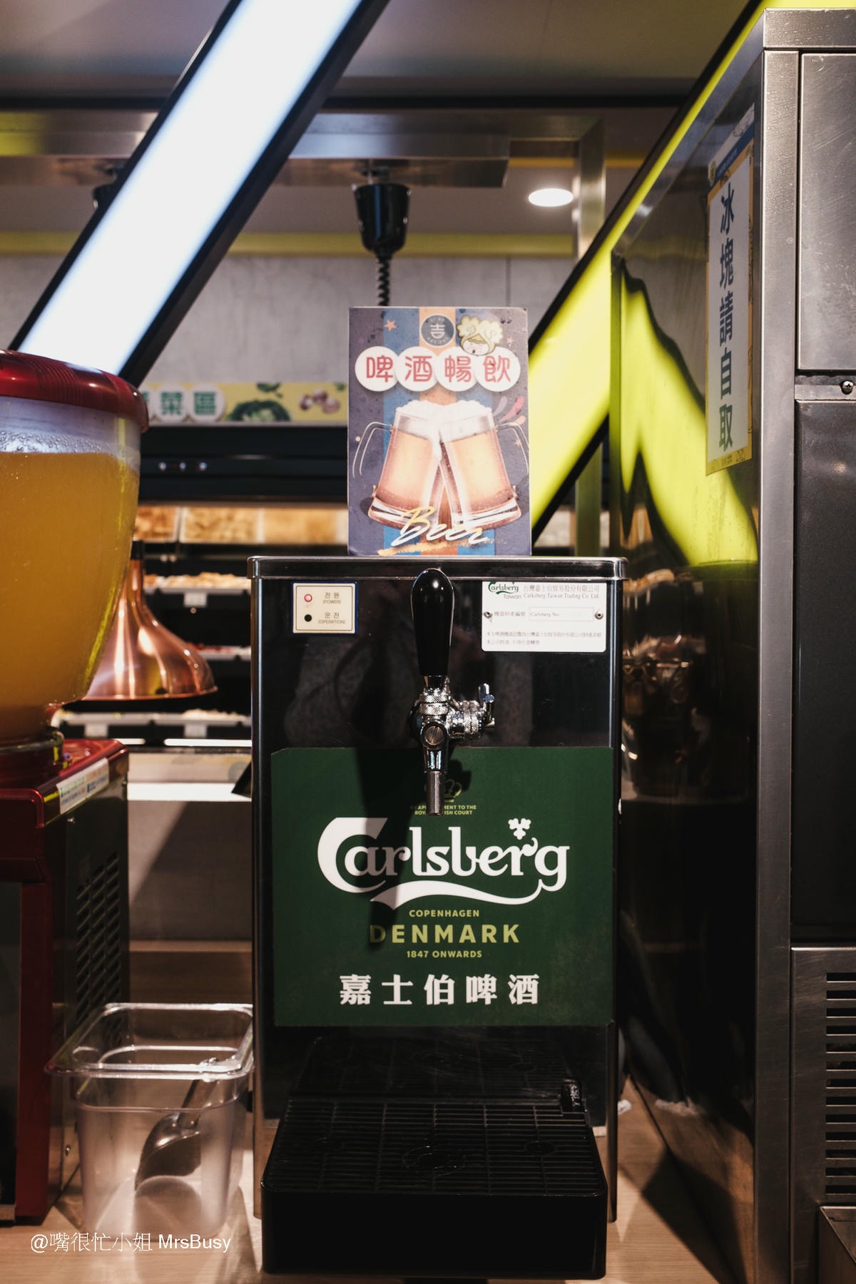 飲品也是亮點之一,除了一般的罐裝瓶裝飲料之外,竟然還有聯名品牌「大苑子芒果冰沙」,口味酸甜濃郁、冰冰涼涼超好喝解膩,還有泰式奶茶也十分受歡迎,好喝到來不及拍照就喝光了 XD另外也有提供丹麥的嘉士伯生啤酒,搭配著超強的熟食自助吧來上一杯,也是一大享受。