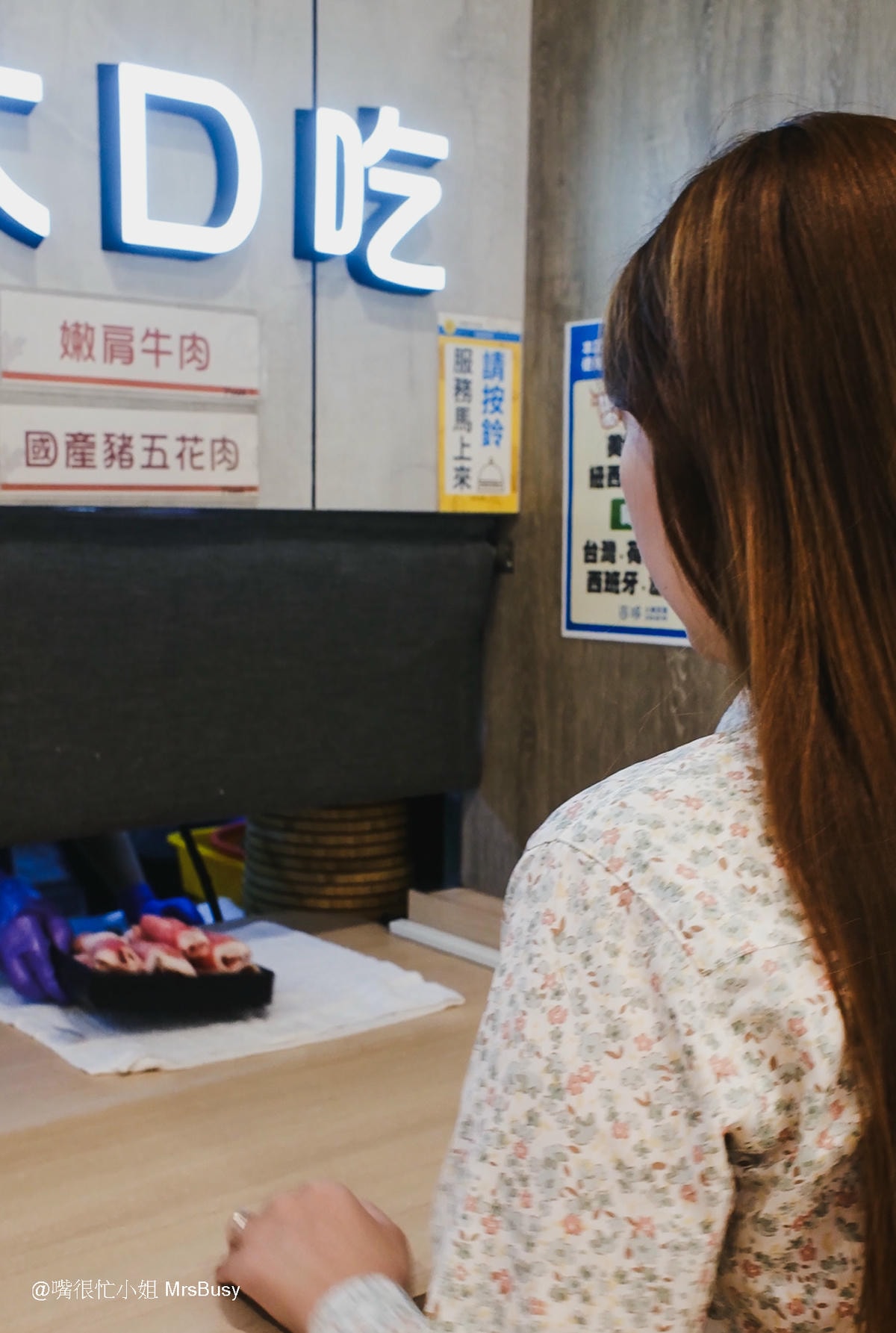 除了自助區供應基本的牛豬雞肉片外,也有現切肉品與鮑魚跟魚片,須至這個櫃檯向服務人員點取。當天吃了嫩肩牛與五花豬;櫃台旁也提供了雞蛋以及各類麵食。