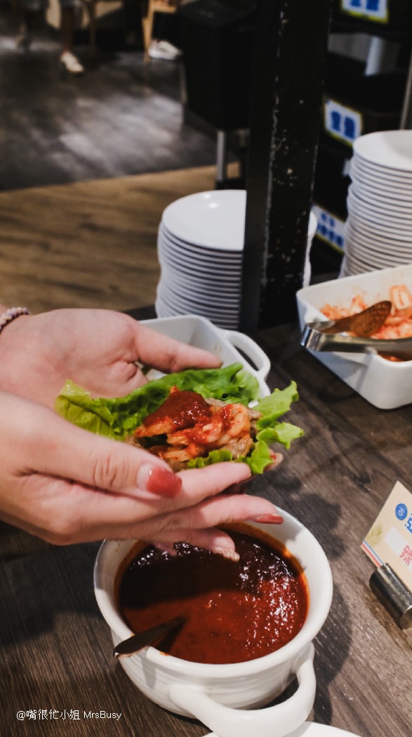 不過最驚豔的還是高麗園的聯名了!不只可以吃到正宗的辣炒年糕之外,還可以生菜包肉!如果你們像嘴很忙小姐一樣愛吃韓式,但是另一半愛吃火鍋,那板橋吉哆火鍋百匯就是你們很好的用餐選擇。