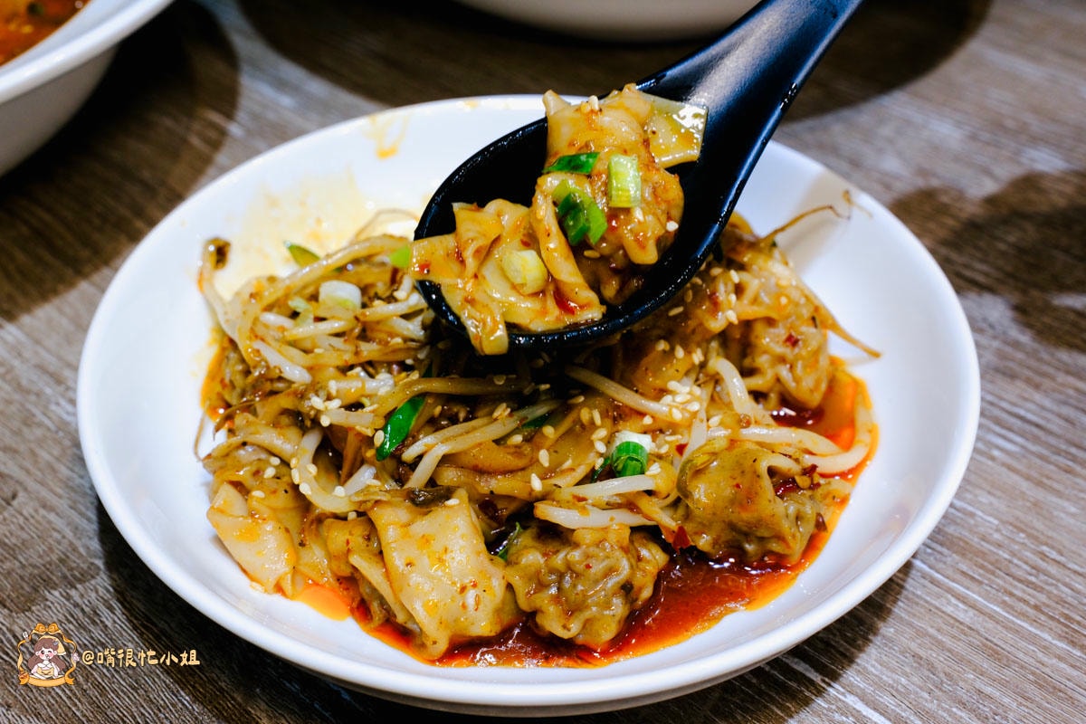 小巧精緻的雲吞,一口一顆剛剛好。外皮薄而滑嫩,裡面的肉餡飽滿,帶點花椒的香麻,辣得過癮卻不會嗆。咬下去還有肉汁流出,很涮嘴。