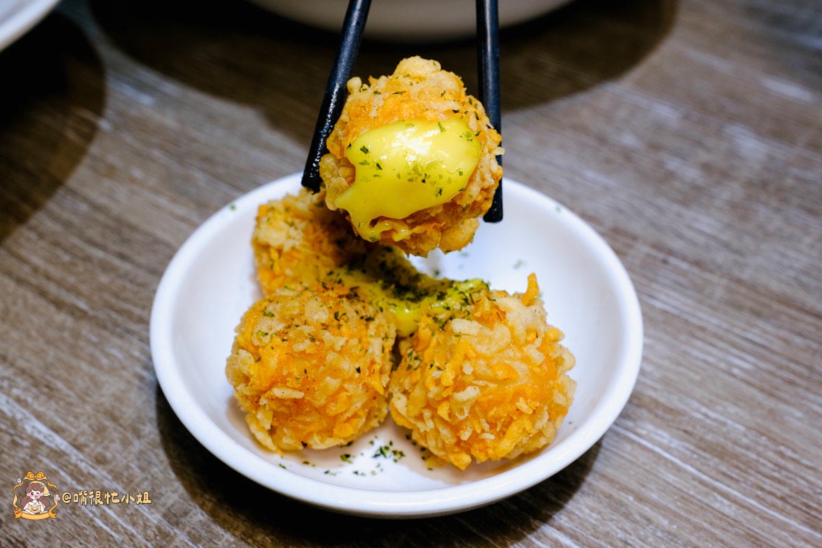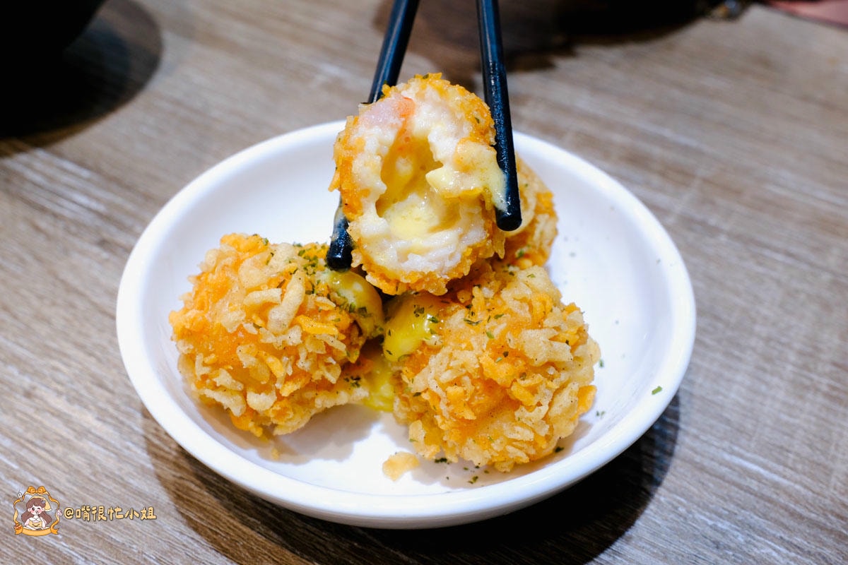 這道絕對是全場驚呼!外層酥脆,一口咬下爆出濃郁餡料,蝦肉新鮮彈牙,甜味和奶香融合,鹹甜交錯讓人停不下來。