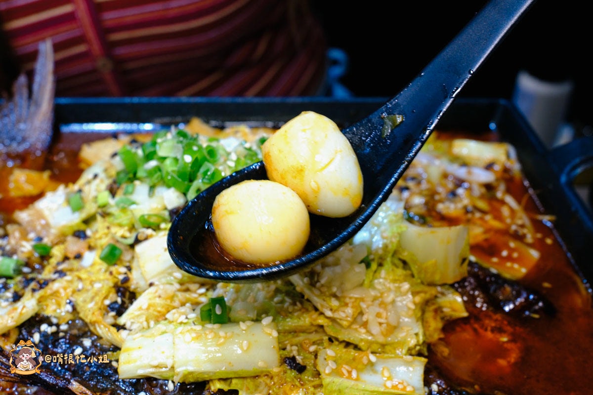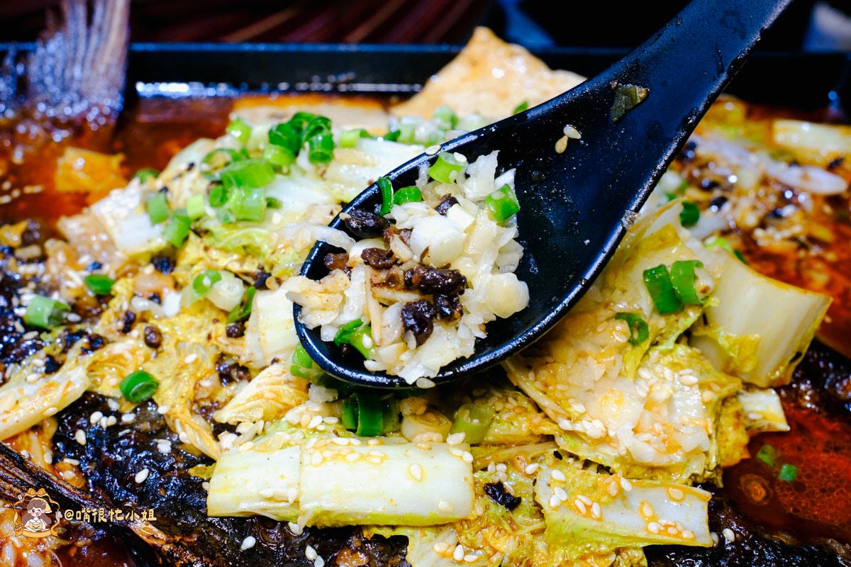 這道真的完全顛覆我對烤魚的印象!魚肉保留帶皮,入口先是焦香,再是豆鼓的鹹香與蒜香爆發。湯汁滲進魚肉,和豆腐、小鳥蛋、金針菇等配料一起吃,鹹香濃郁到我忍不住狂扒飯。