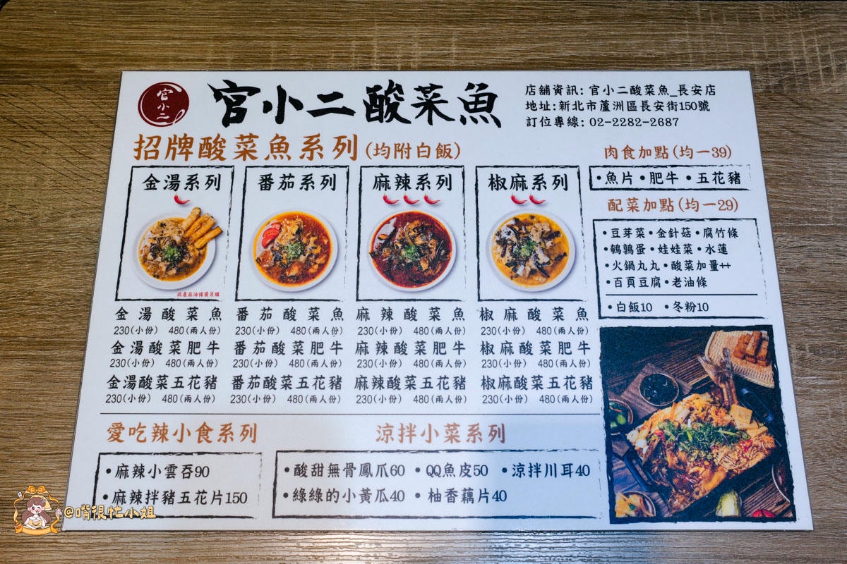 某天嘴饞突然想來點酸酸辣辣的料理,搜尋後發現蘆洲有間新崛起的店——「官小二酸菜魚 蘆洲店」。主打酸菜魚個人鍋;有金湯、番茄、麻辣三種湯底,還能搭配烤魚、蝦球、雲吞等小點,看得我立刻決定衝一波!沒想到從店內氛圍到餐點風味都超出預期,完全不是踩雷,而是發現了一間隱藏版寶藏餐廳。