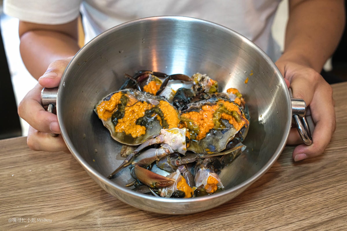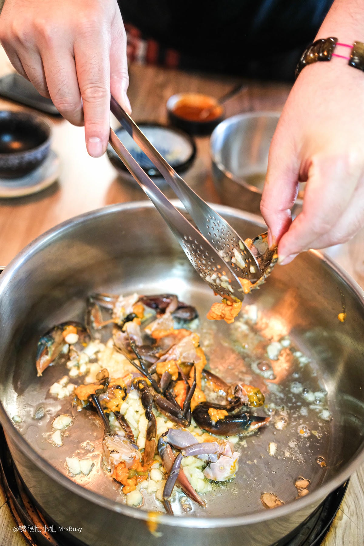 極蜆鍋物還有韓式風格的生醃系列,推薦這道剝皮辣椒生醃蟹,生醃的蟹膏帶有剝皮辣椒的微微辣度超下飯,配上海苔味道一絕,敢吃生醃的朋友一定要試試。