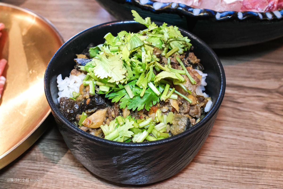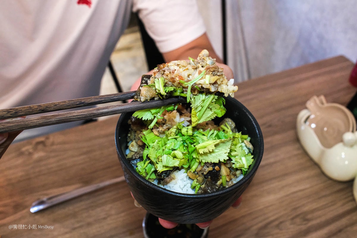 很特別的附餐選擇!皮蛋混合香菜與熱騰騰白飯,上面淋上秘製醬料,鹹香味濃郁,讓人忍不住一口接一口的,很涮嘴。