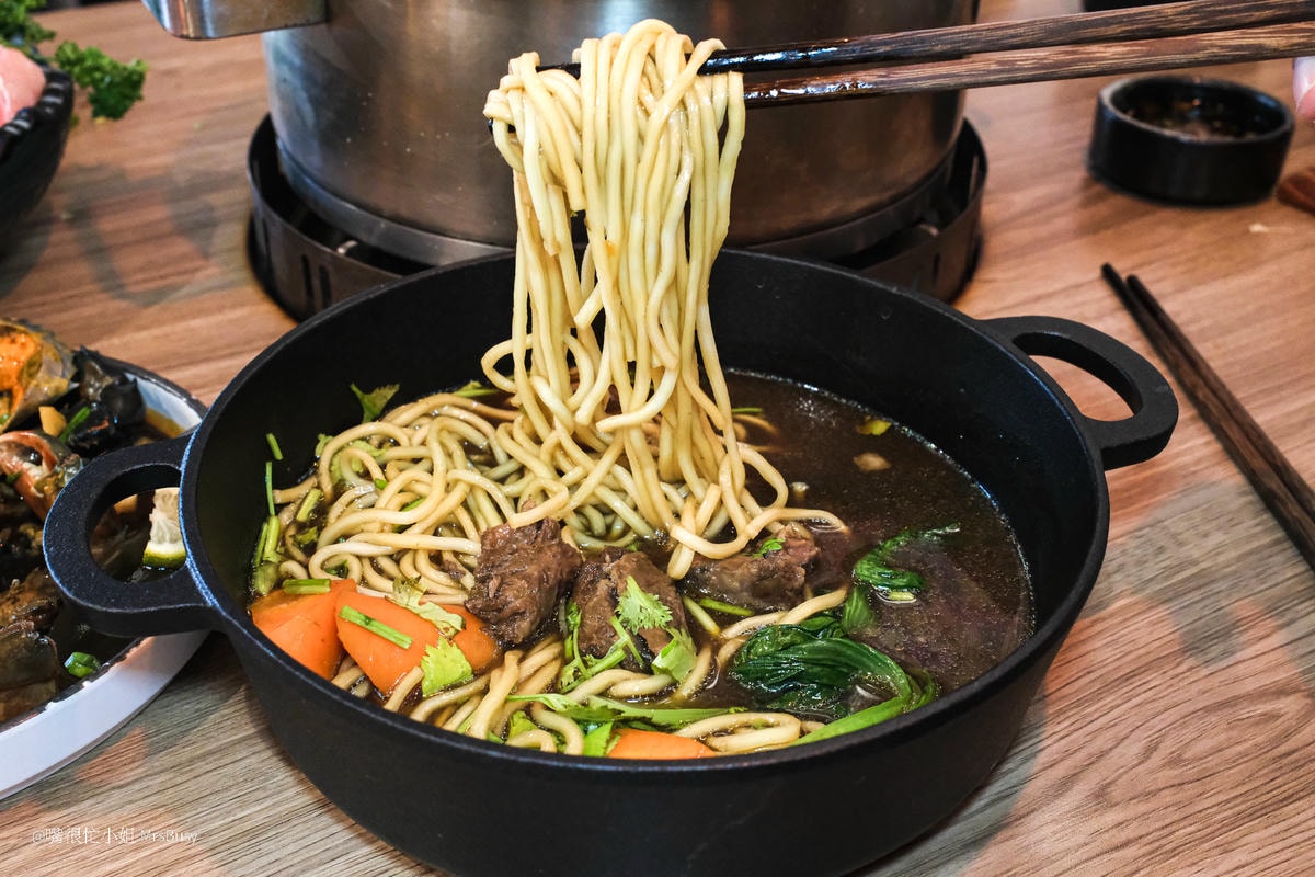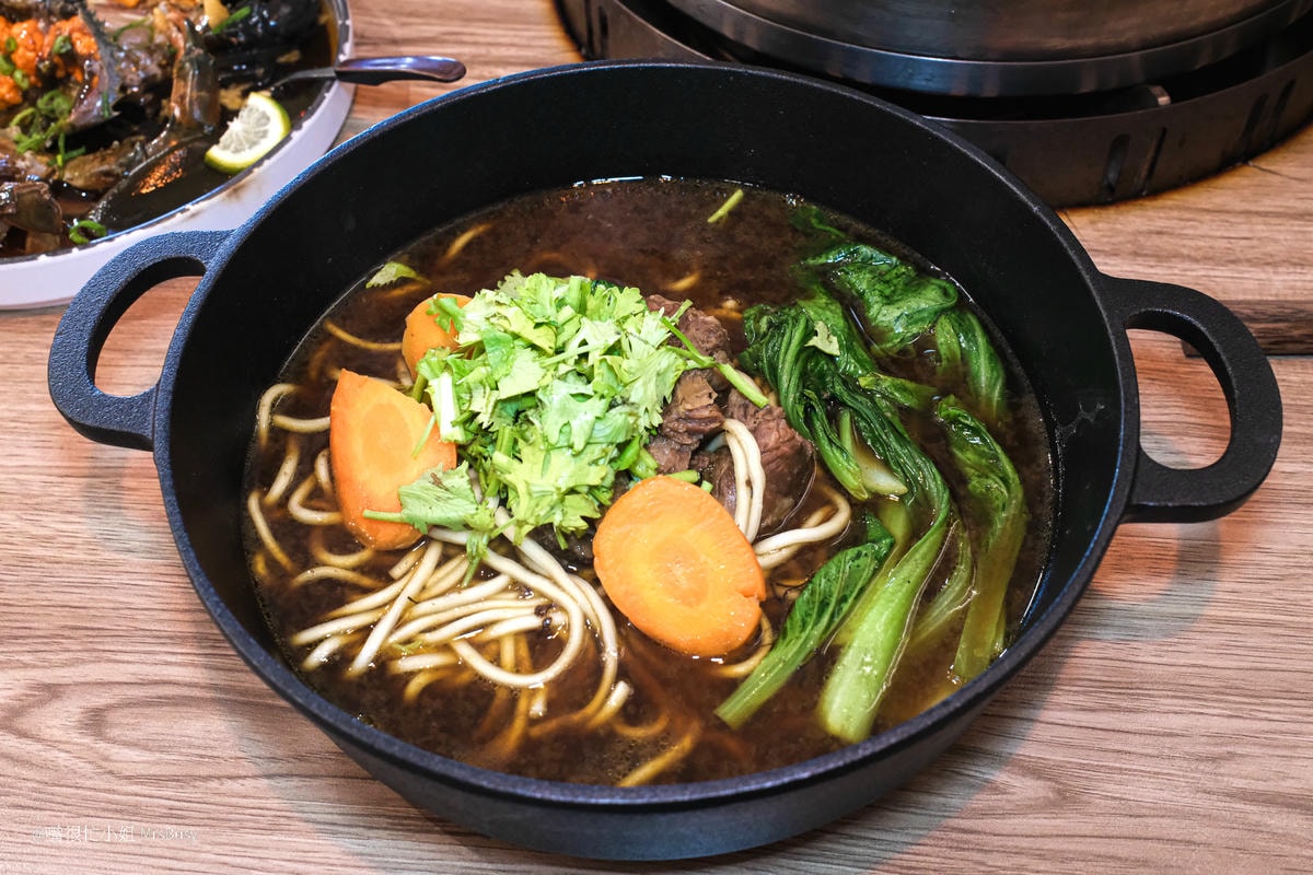 很特別的是極蜆鍋物還有販售自製牛肉麵,湯頭用牛骨熬煮,清爽不油膩,麵條 Q 彈吸附湯汁,每一口都有牛肉的香氣,跟一般重鹹的牛肉麵完全不同,湯是真的可以全部喝光!