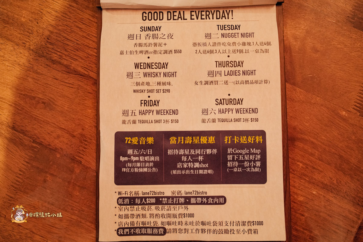 店名| Lane 72 Bistro 英式餐酒館《板橋店》