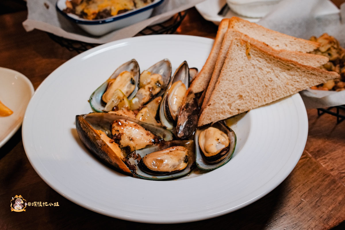 淡菜肉質飽滿、海味濃郁。湯底融合奶油與檸檬香氣,微辣的紐奧良香料更增風味;吐司吸飽湯汁後香氣更厚,鹹香又滑順,適合配啤酒邊聊天邊嗑。