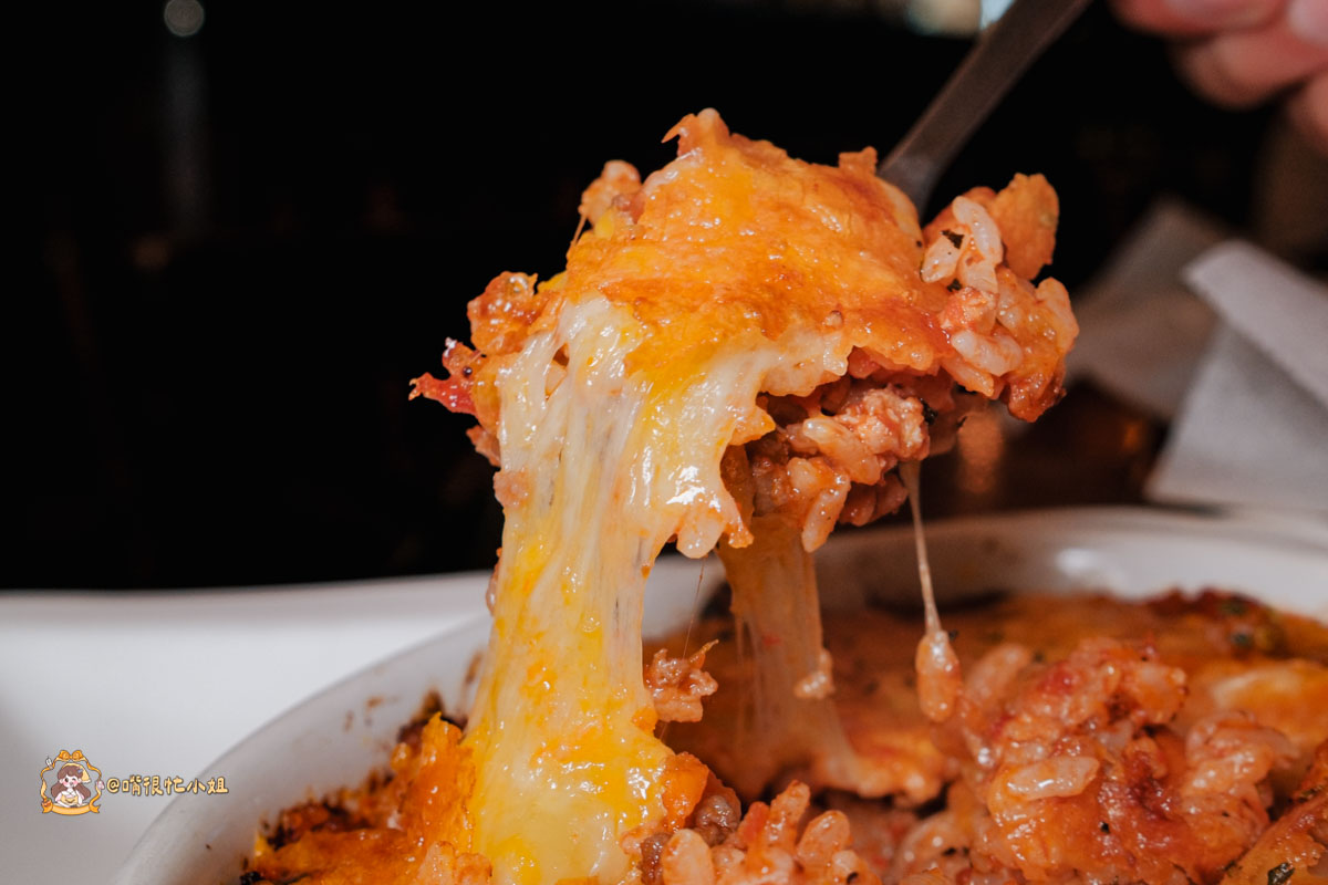 焗烤起司的焦香一上桌就撲鼻,番茄肉醬包覆著米粒,每一口都有番茄的酸甜與奶香交疊;底層微焦的部分特別香,是讓人忍不住挖到底的那種好吃。