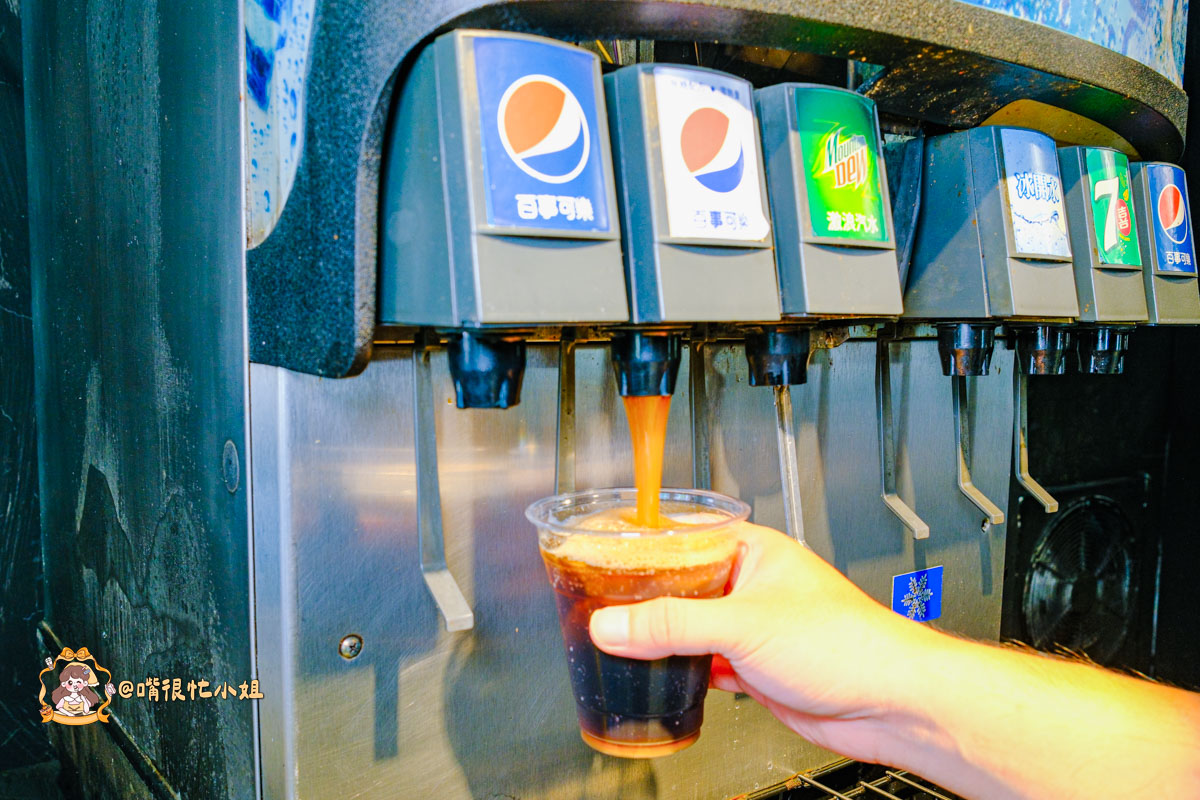 現場有汽水機可以自助續杯,可樂、雪碧、芬達通通有。吃完炸雞配冰可樂,爽度直接拉滿。