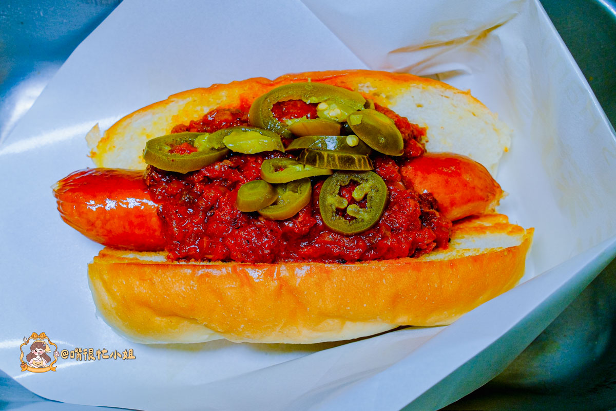 辣肉醬用牛絞肉與番茄燉成,香料味濃郁但不嗆。熱狗堡麵包柔軟彈性好,辣味會在後段慢慢散開,搭配加上滿滿墨西哥辣椒,整體平衡得剛好,是微辣控會愛的一道。