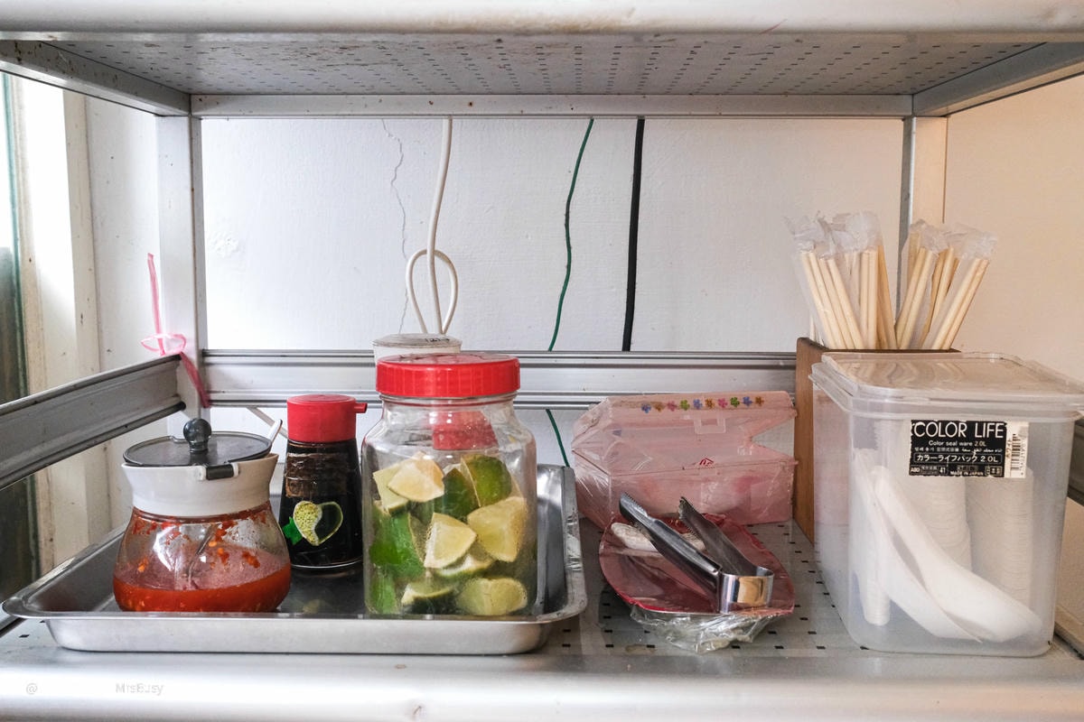 內用流程是先找好座位再到櫃檯點餐付款,餐具、醬料自取;餐具都放在烘碗機內消毒,乾淨又衛生,店裡還備有越式辣椒醬、檸檬和魚露可以自己加,調味完全依個人口味,很加分。