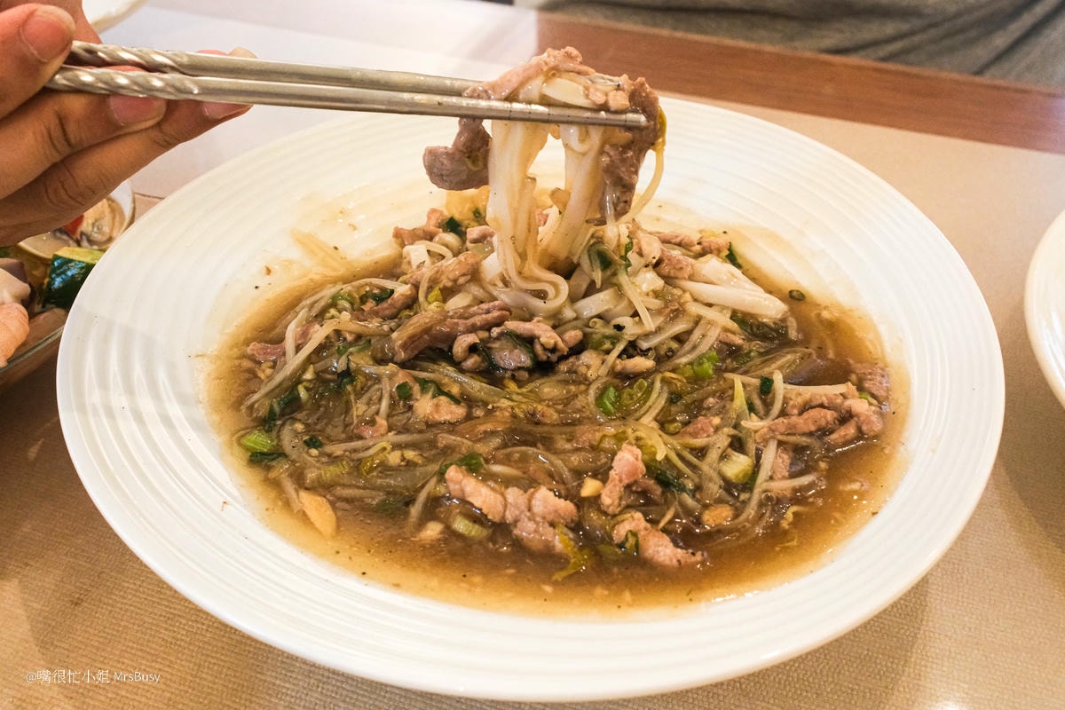 牛肉米線湯一定要熱熱喝,湯頭清甜帶著微微香料味,是那種喝到最後一口也不會膩的清甜感,牛肉片還帶著粉嫩的顏色,吃起來很軟嫩,很像在吃台南的牛肉湯;還有豆芽和蔥花的提味,暖胃又滿足。