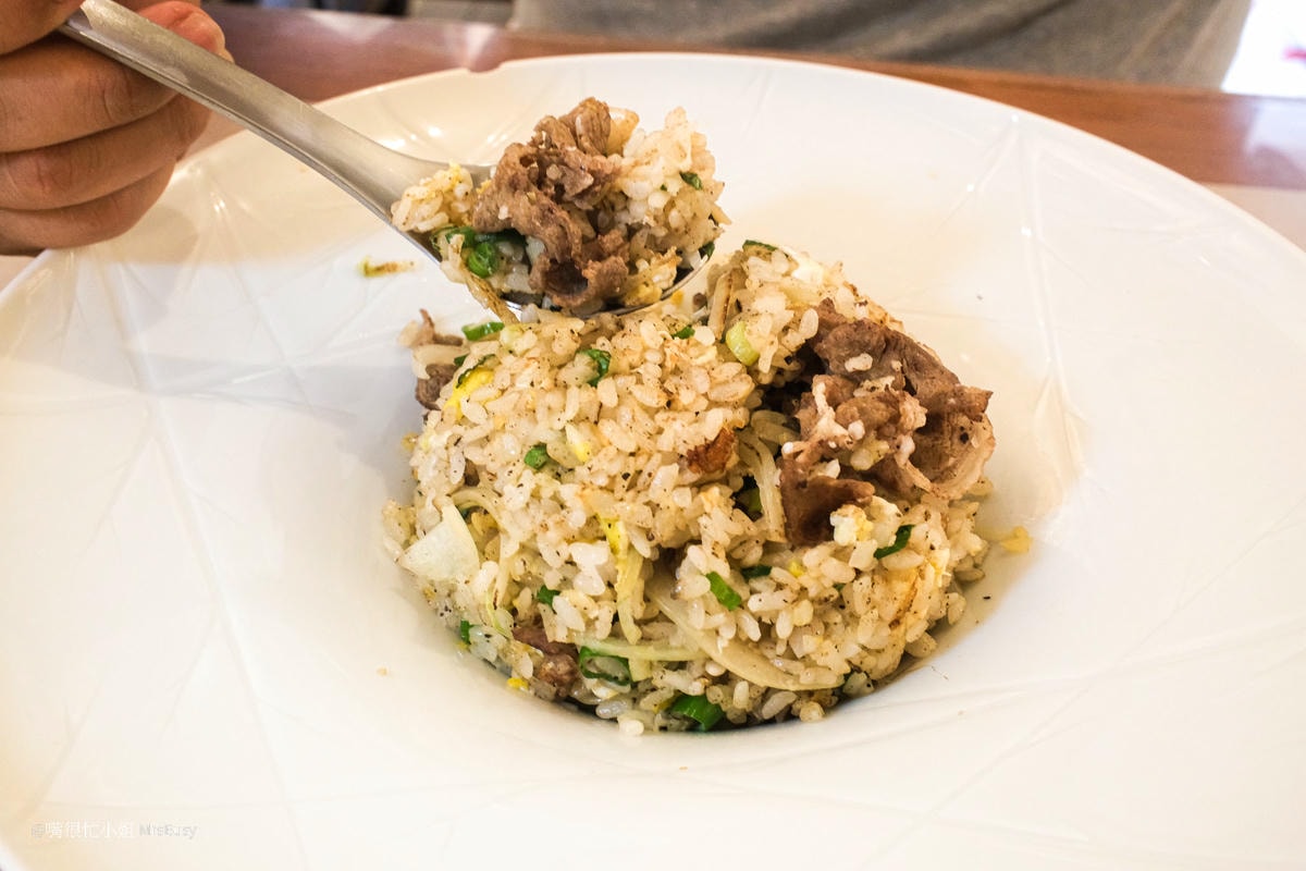 牛肉炒飯我覺得算是被低估的一道,本來以為會很普通,結果很好吃!米飯炒得粒粒分明,鹹香中帶一點胡椒味,牛肉軟嫩不乾柴,而且份量給得不小氣,每口都吃得到肉。