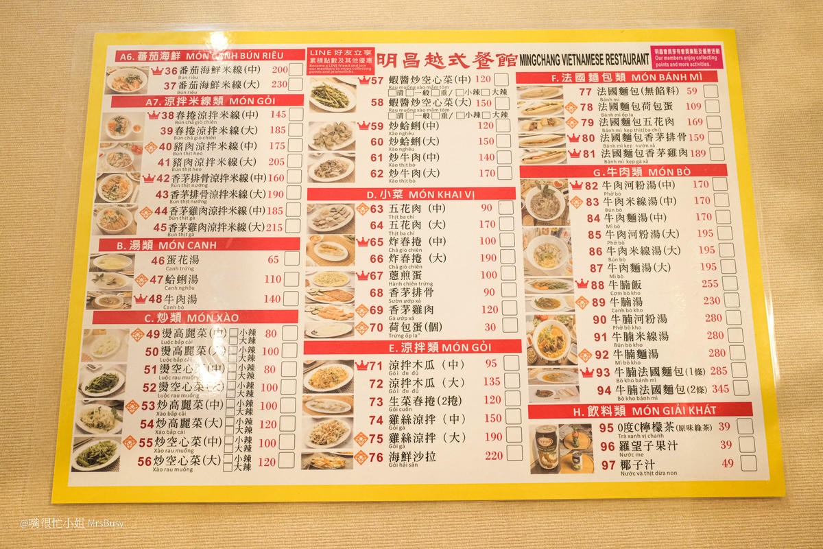 《明昌越式餐館》就在學府路上,雖然外觀看起來很樸實,但每到用餐時間人潮滿滿,桌子簡單乾淨,不用擔心有黏膩感,而且冷氣很涼XD吃湯麵也不用怕會流汗。