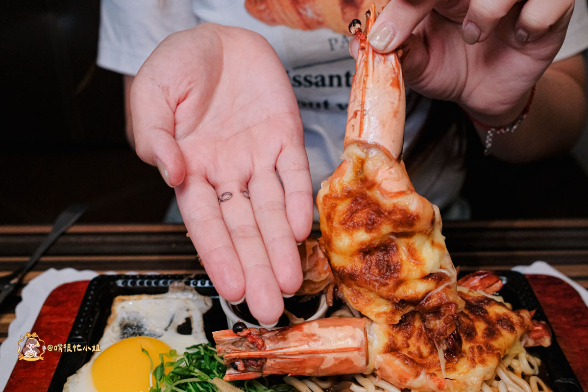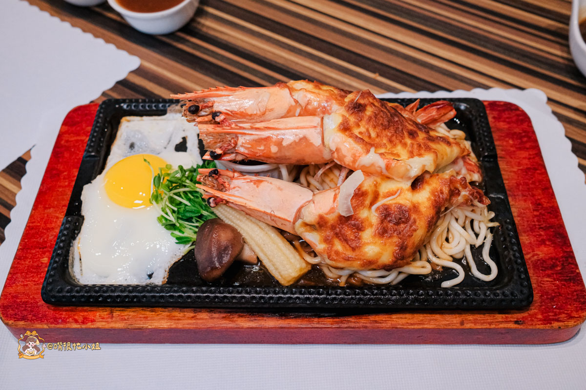 外層焗烤微焦,切開時會有蝦汁滲出,蝦肉厚實、彈牙帶甜。起司融合蝦味鹹香剛好,不膩口,底下的鐵板麵吸滿醬汁,熱氣中帶點焦香,是會讓人默默吃光的那種。