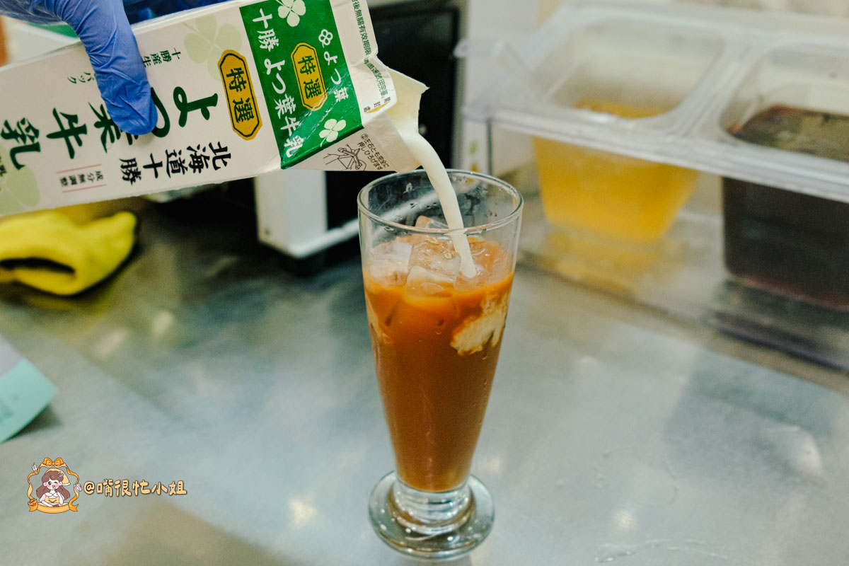 這杯用「四倍鍋煮」方式熬煮紅茶,茶底濃厚卻不苦澀,香氣飽滿。使用北海道十勝鮮乳取代奶精,比例調得恰到好處,喝起來滑順濃郁;最後再擠上鮮奶霜淇淋,冰涼滑順的奶香與濃茶融合,那一口喝下去的濃度與香氣,真的會讓人一直回味。