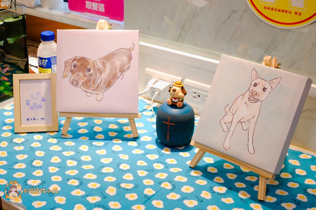 達樂早午餐在 碧華街與五華街口 附近,巷子不擁擠,白天採光蠻好。室內是溫暖的奶茶色牆面與木桌,整體乾淨明亮,桌距不會擠。點餐取餐有動線,桌上會放號碼夾,東西多也不會手忙腳亂。最吸睛的是櫃檯上的 狗狗插畫與小模型,看得出老闆是愛狗人,氛圍自然就很放鬆。和周邊多數只賣到中午、以外帶為主的傳統早餐相比,這裡 願意讓你坐下慢慢吃、也 歡迎帶毛孩(牽繩/提籃為原則),是跟附近店家很不一樣的地方。
