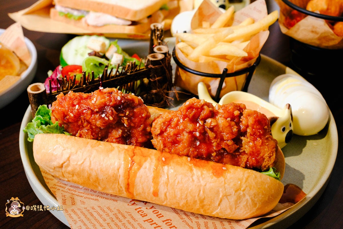 麵包是長條 熱狗堡,外皮烤到微脆,咬下去有點「卡滋」的薄酥感,裡頭兩大塊炸雞排 外皮脆、裡面多汁,上面刷的是店家自製的 甘辣型的韓式辣醬,甜度先到、辣度在後面慢慢浮出來,尾韻帶一點蒜香與芝麻香。不是那種會辣到冒汗的等級。