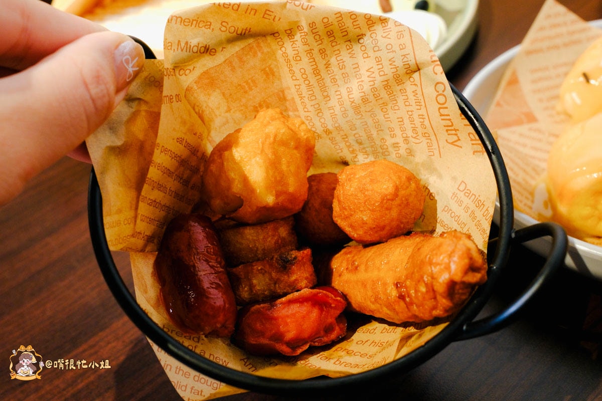 「脆脆煮」就是一籃 古早味炸物拼盤,內容會看當天供應,我們這籃有甜不辣、魚丸、米腸、香腸等;外皮炸到乾爽不含油,很適合兩三個人一起分著吃。