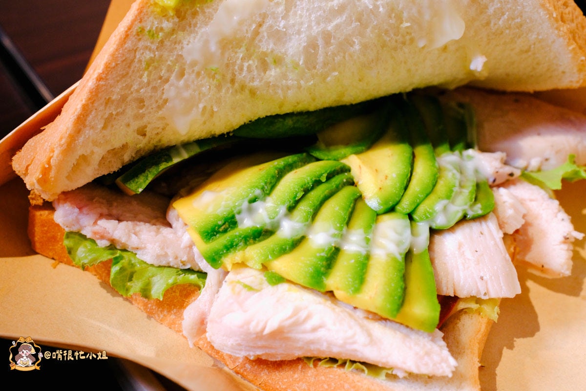 吐司壓到外層微焦香、邊邊帶脆,裡面塞了 舒肥雞胸 與 大片酪梨。雞胸口感是 軟嫩不乾柴 的那種,咀嚼時帶一點胡椒與蒜味,鹹度不會過頭。酪梨切得夠厚,吃起來是 奶油感+淡淡果香,搭上少量美乃滋,整體是清爽路線。