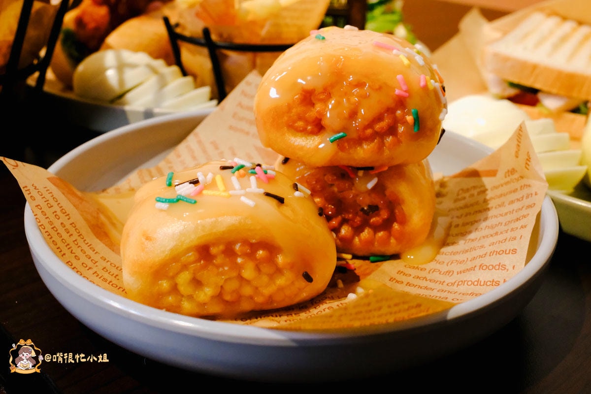 這個很罪惡、但真的好吃!外皮炸到金黃酥脆,咬下去「喀」一聲,裡面是 細密拉絲的軟Q口感。表面淋煉乳,撒了彩色糖珠, 甜度中偏甜,但因為外皮酥、內部鬆軟,甜味不會膩到不舒服。