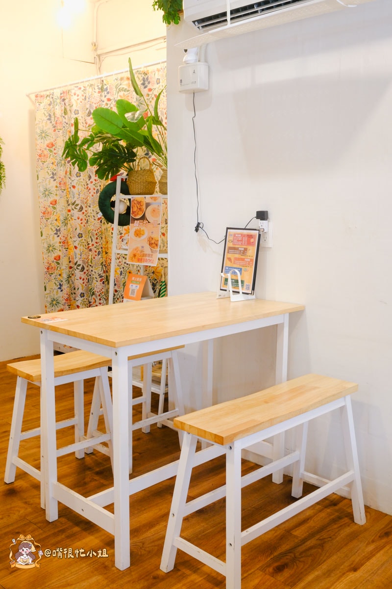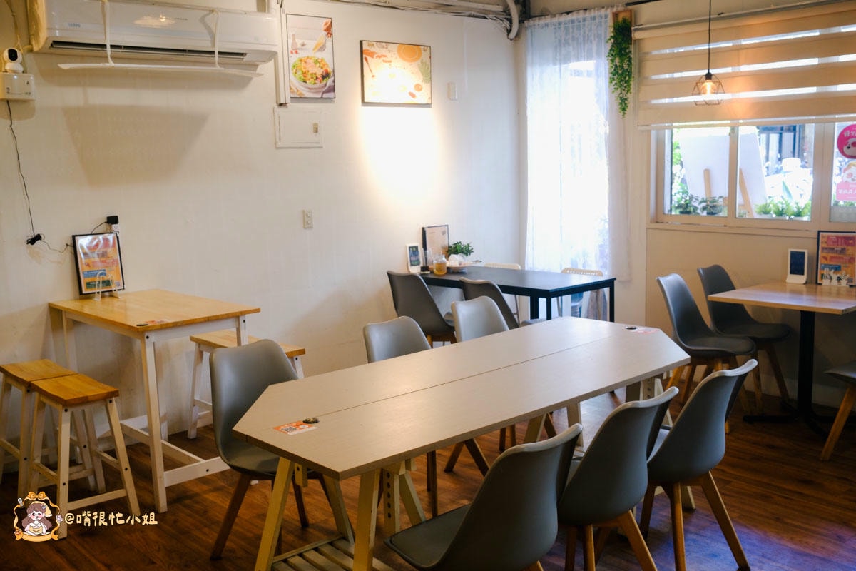 從門口進來,可以看到落地窗加上些許綠植,擺設簡單卻溫暖。室內座位數不算非常多,但每張桌子的間隔做得不擁擠,不會互相干擾。燈光偏暖黃,自然光充足的時候更有療癒感。牆上有小畫作、木質裝飾讓整體很溫馨,讓人想待久一點。服務態度親切;而且有附上透明手套非常貼心。