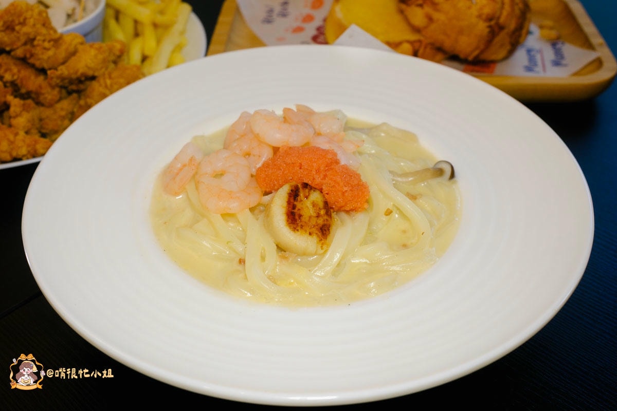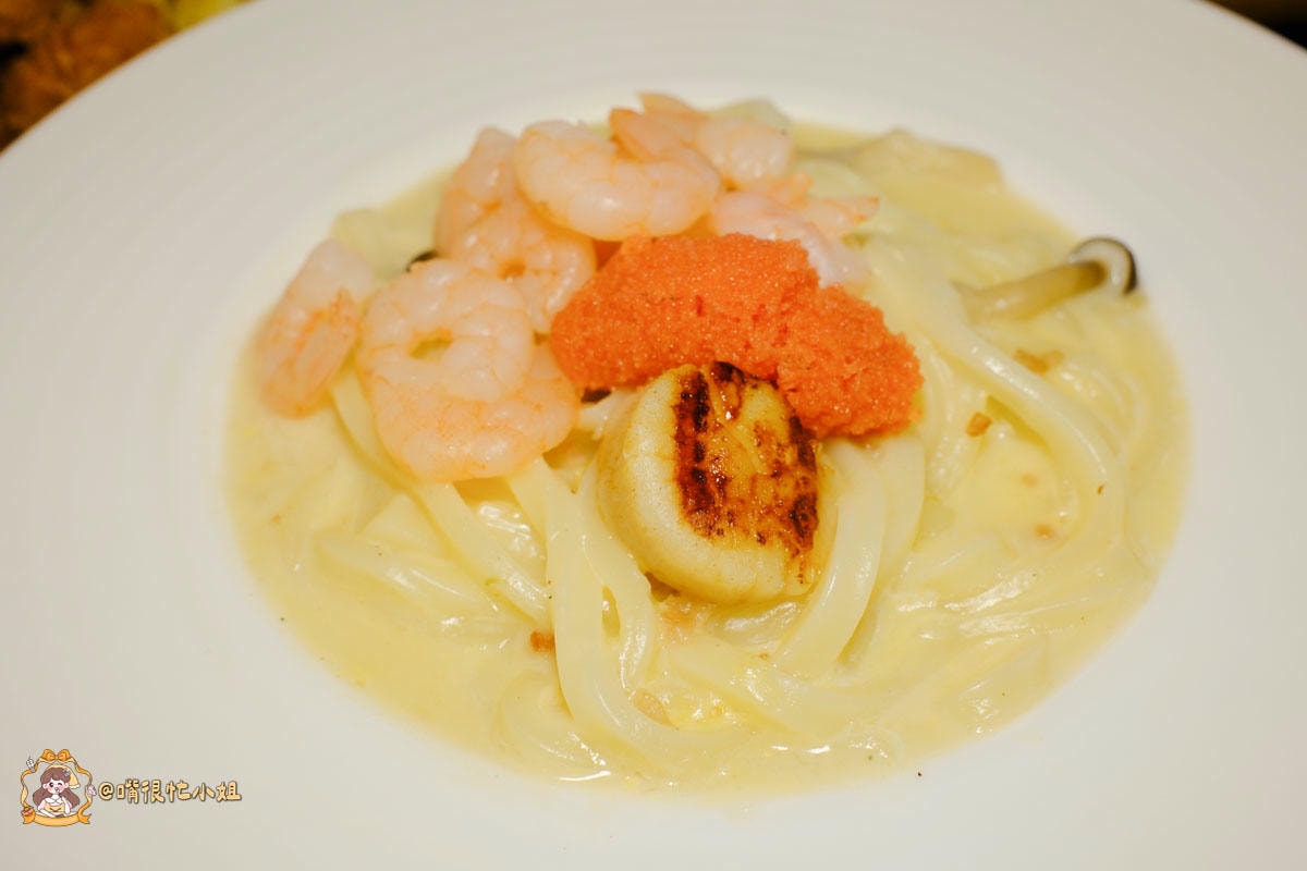 一上桌就被香氣抓住,明太子鹹香中帶著一絲奶油的滑順。烏龍麵條本身偏粗,有嚼勁,吸附奶油醬汁與明太子顆粒,每一咬都能吃到魚卵與奶香裡的海味,非常好吃!