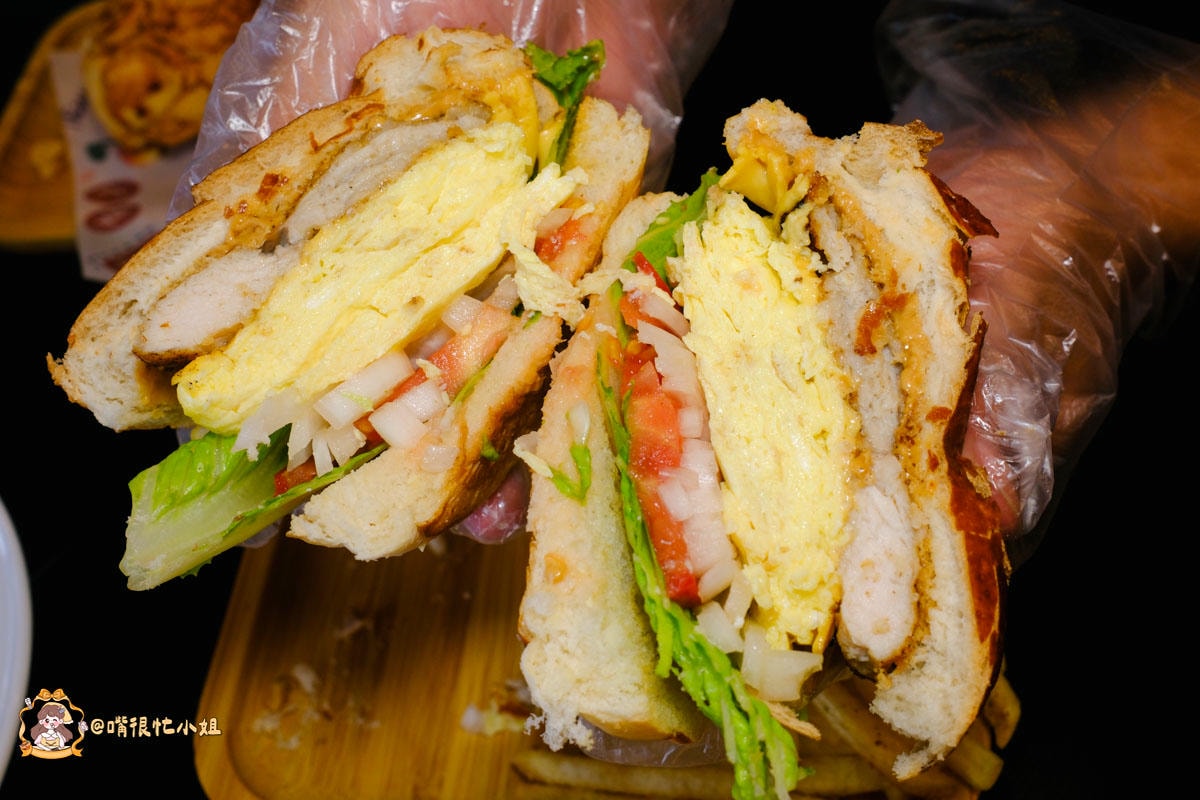 這是一款比較簡單但吃起來有亮點的漢堡。菲力雞排炸得外皮微酥,裹著一層花生醬汁或是花生碎,香氣先來,咬下去雞肉多汁,肉質不會因為油炸過度而乾;漢堡包有柔軟度且微微烤過,咀嚼中有麵包的香與花生的顆粒口感。搭配生菜與蕃茄片,爽脆與酸味中和了醬的厚重感。