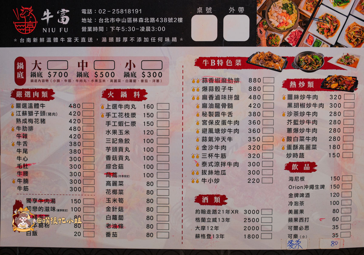 牛富溫體涮牛肉菜單