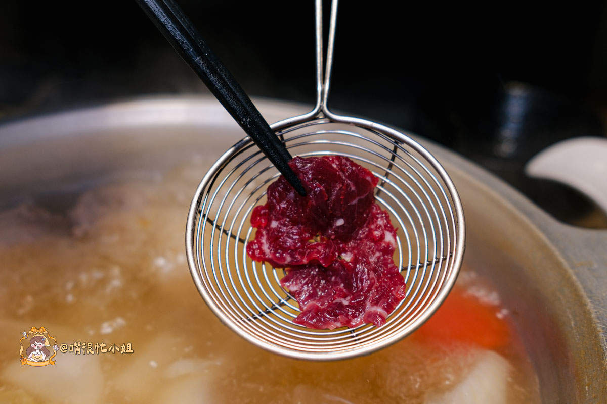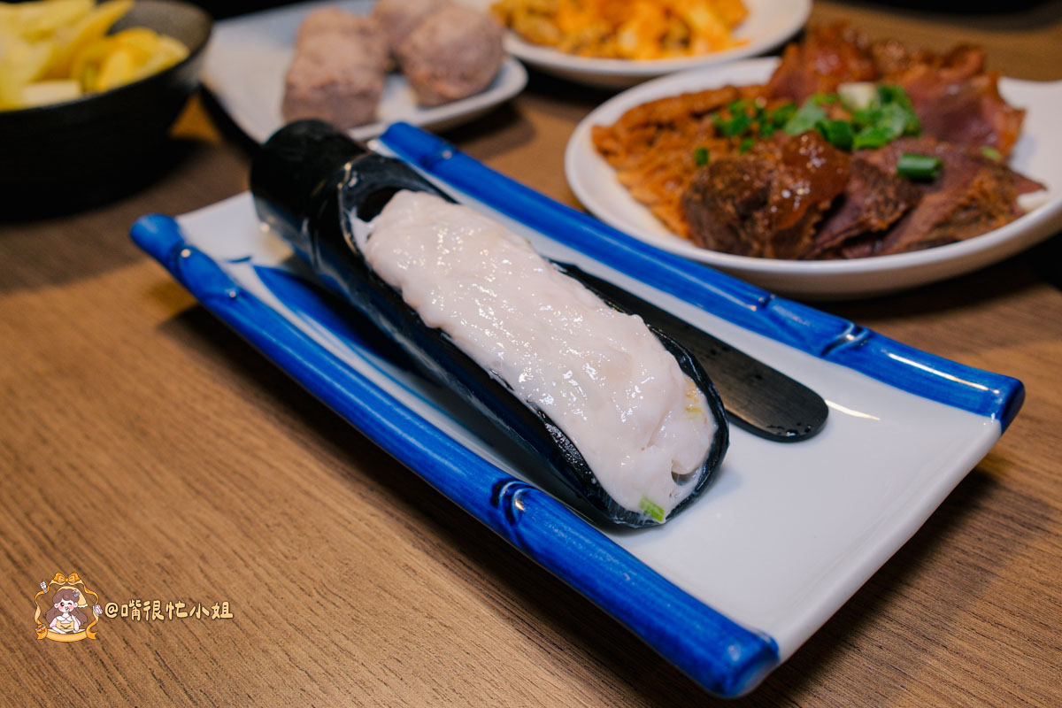 牛舌切得比一般火鍋店更厚一些,表面刷上秘製醬後多了甜香;口感帶脆,越嚼越香,牛舌本身的肉味被醬汁提到更明顯,不會死鹹,是當天嘴很忙小姐最喜歡的一道。