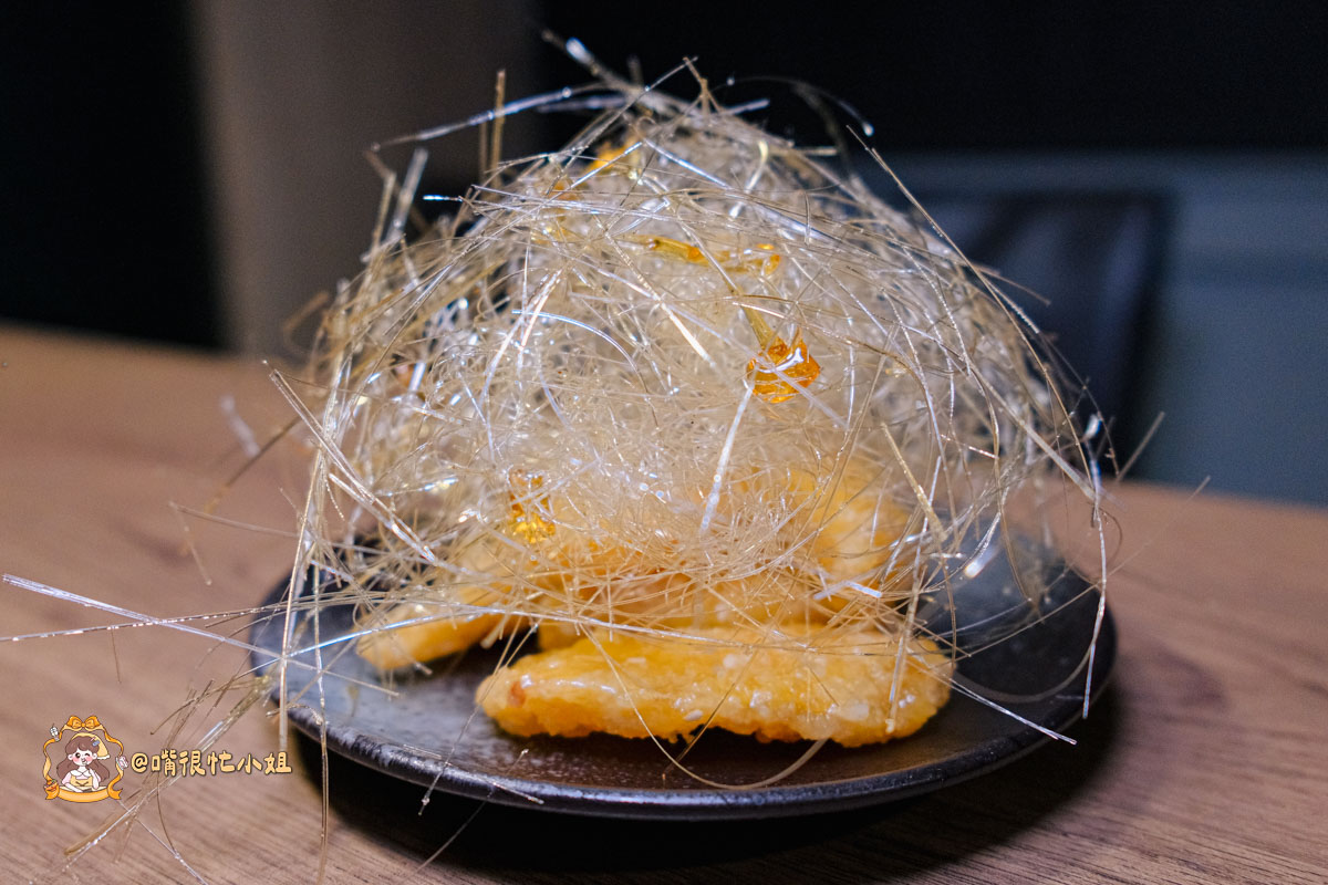 這道超吸睛!上桌時外層是漂亮的糖絲,敲下去有輕脆聲。地瓜是冰的,但是鬆軟甜香,糖衣在口中化掉的瞬間帶出焦香,是很有儀式感的收尾甜點。