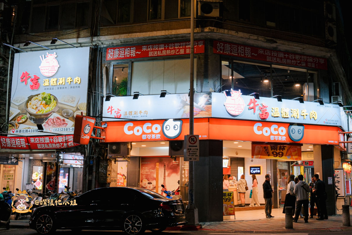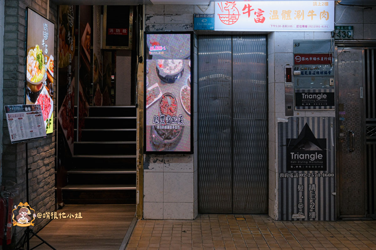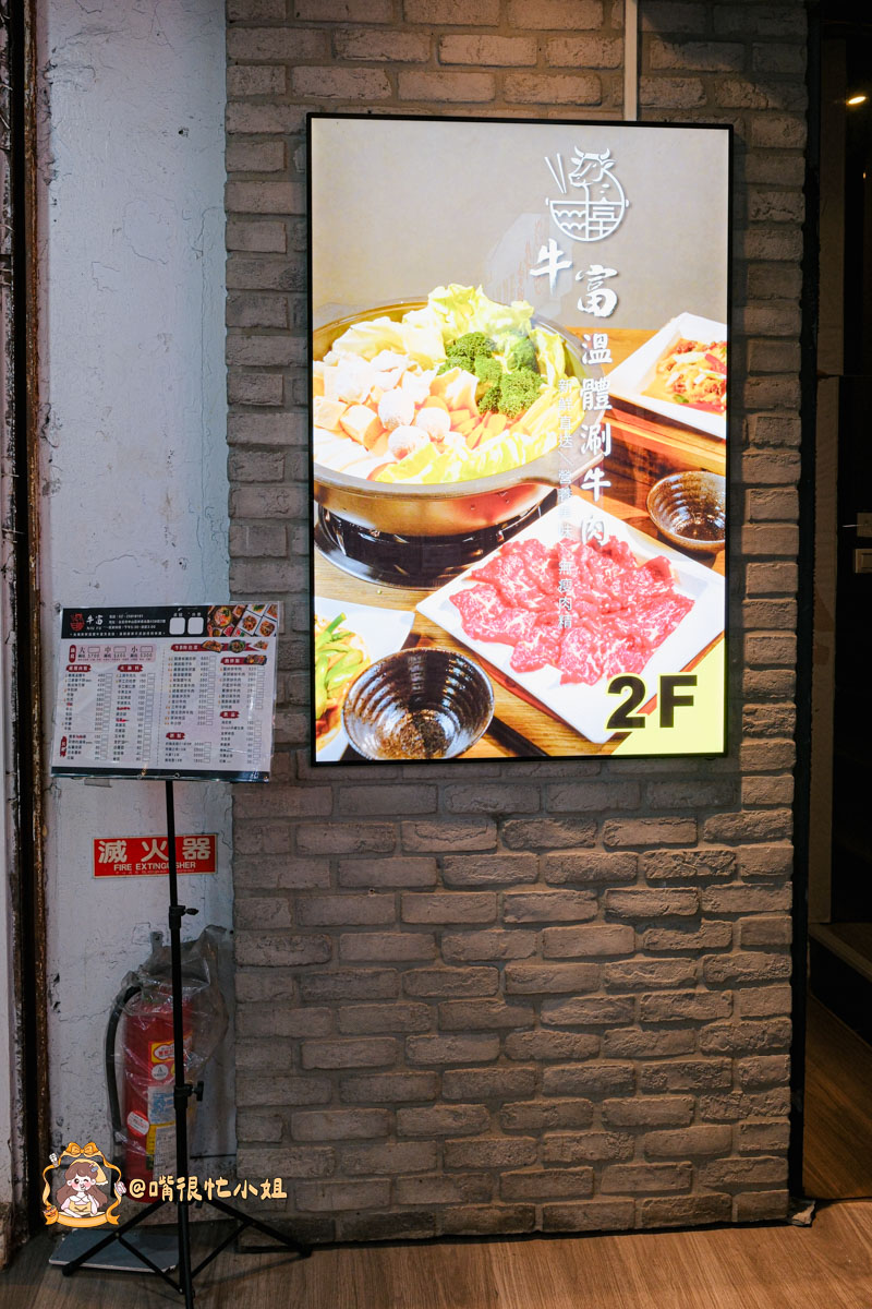 牛富溫體涮牛肉就位在林森北路上的COCO樓上,外觀是亮亮的紅白招牌,位置很顯眼。