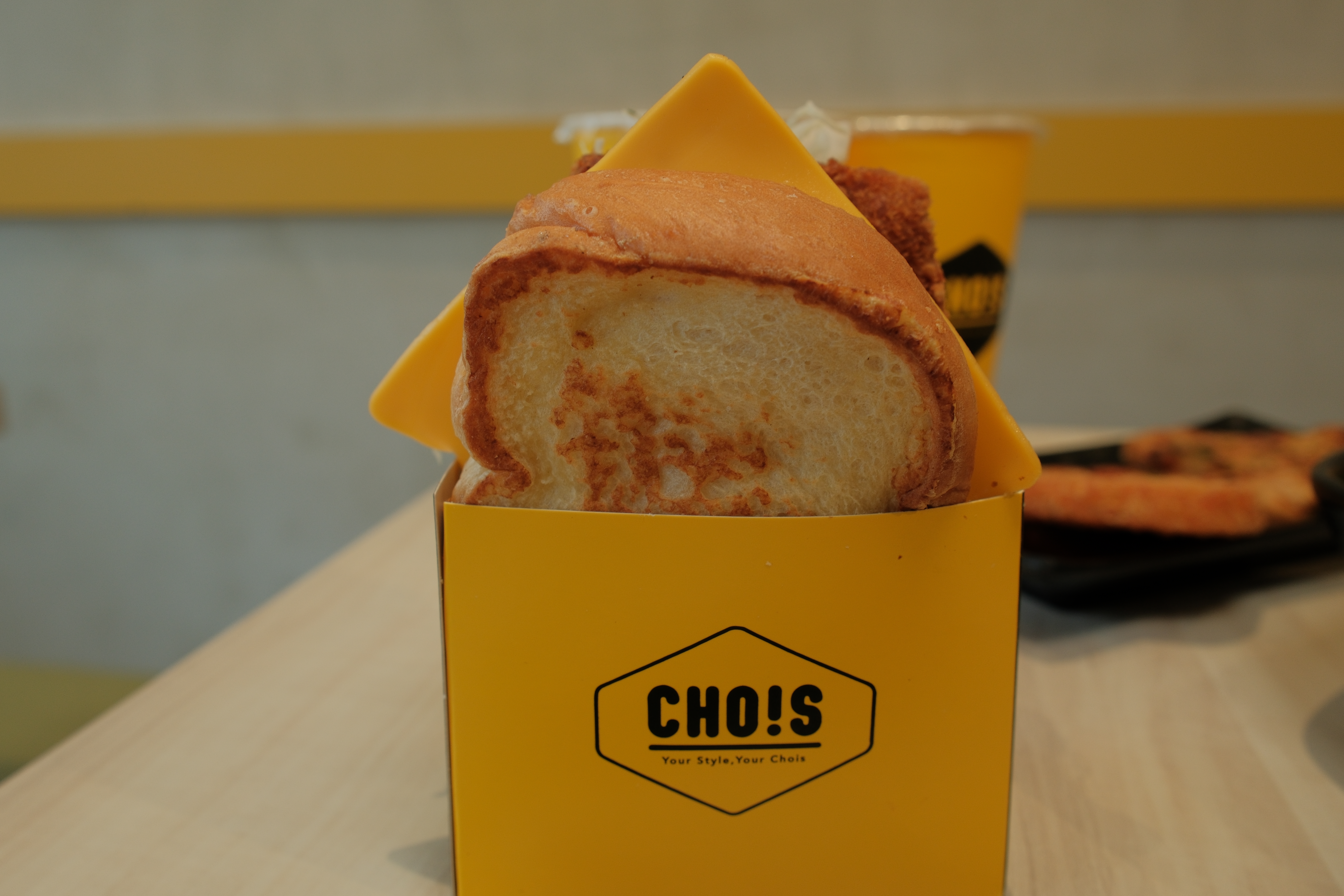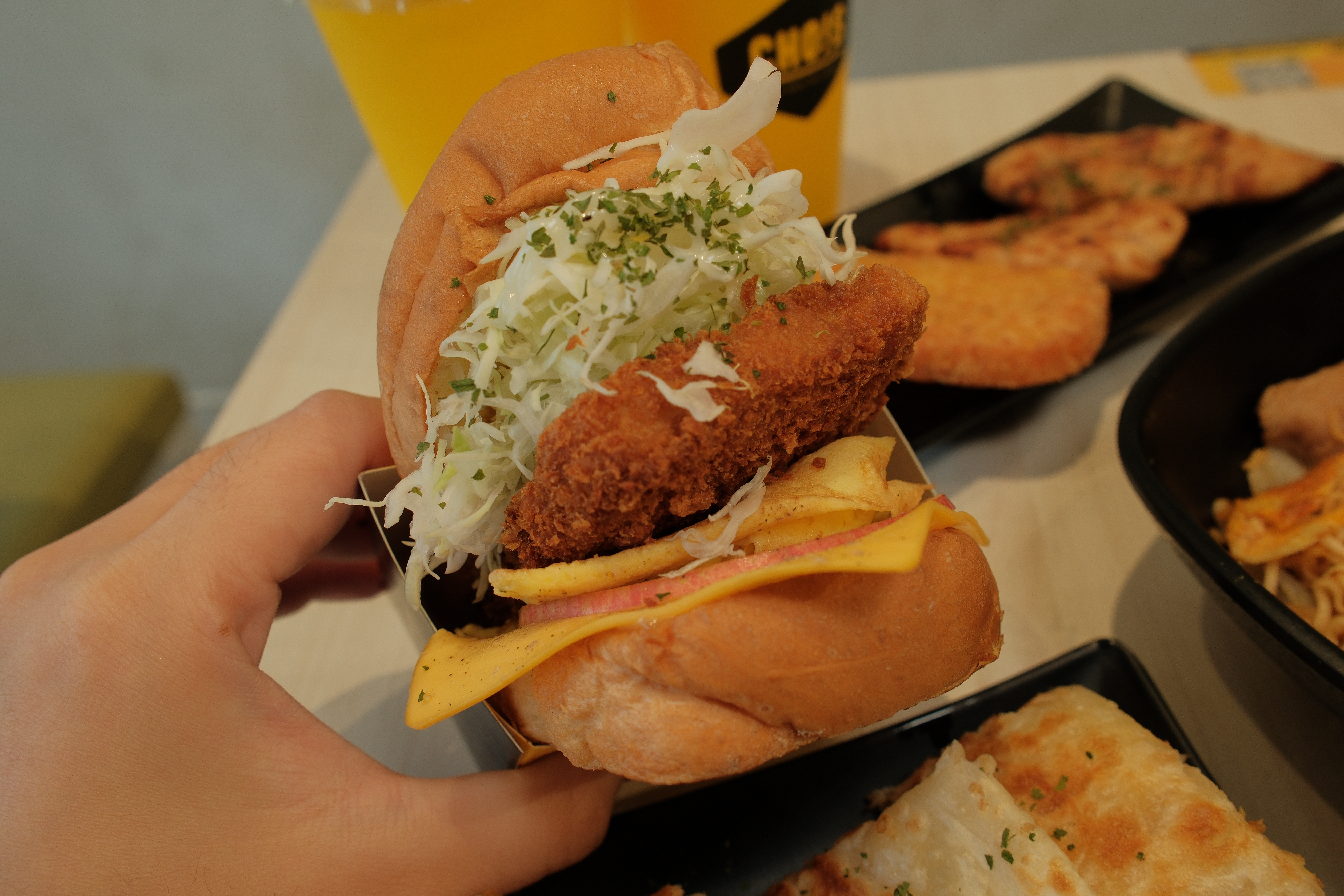 這道是店內的招牌之一。外層吐司吸滿蛋液後煎到金黃,邊緣酥香、中心鬆軟。厚切魚排鹹香多汁,咬下會有一點爆汁感,搭配起司和生菜剛好解膩。