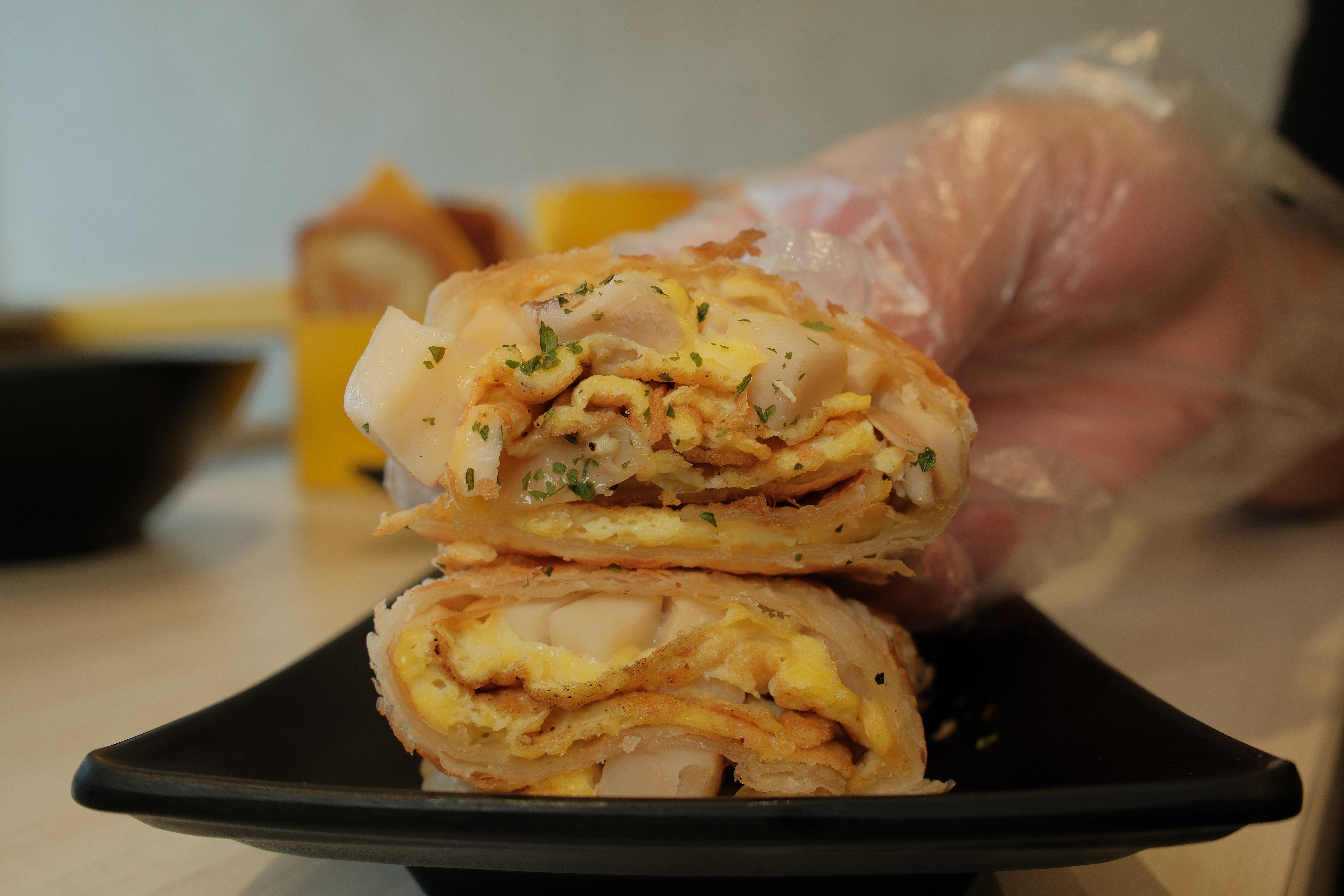 與傳統薄皮不同,丘一司的蛋餅是酥皮口感;外層卡滋作響、裡面包著滿滿香菇餡,每一口都能吃到香菇跟蛋液融合的幸福感。