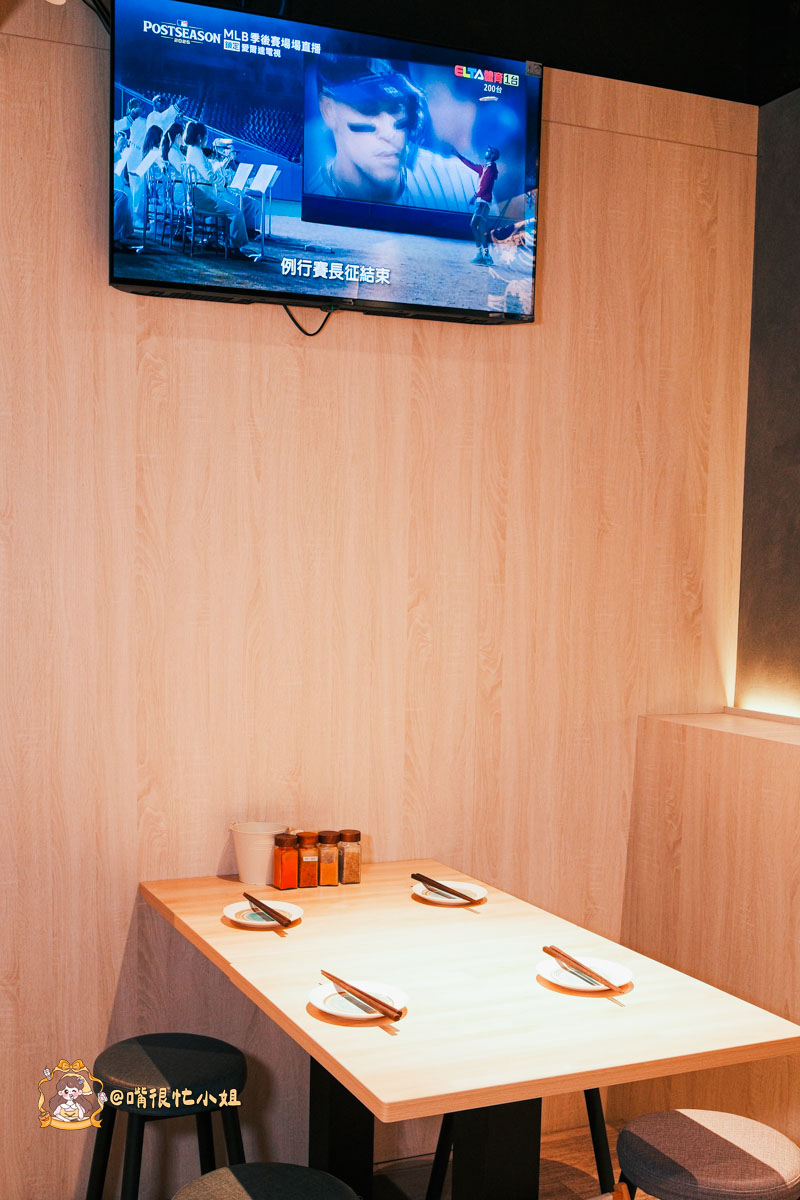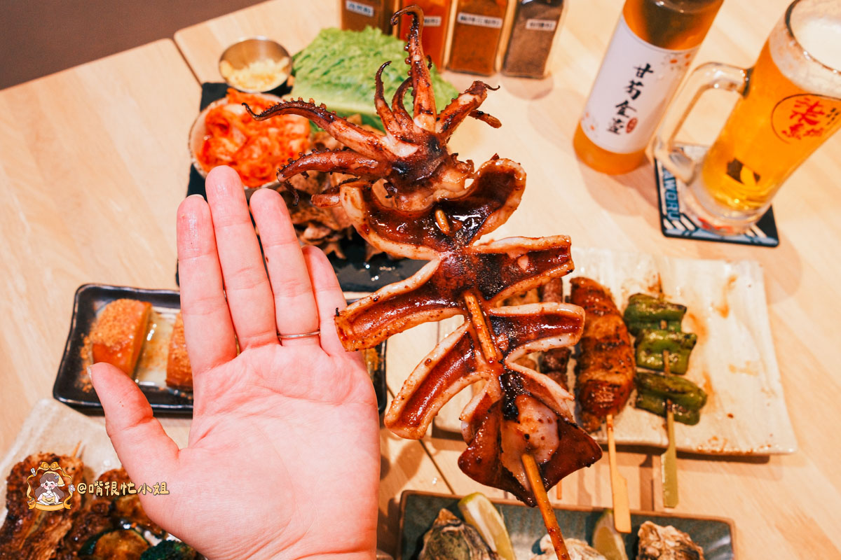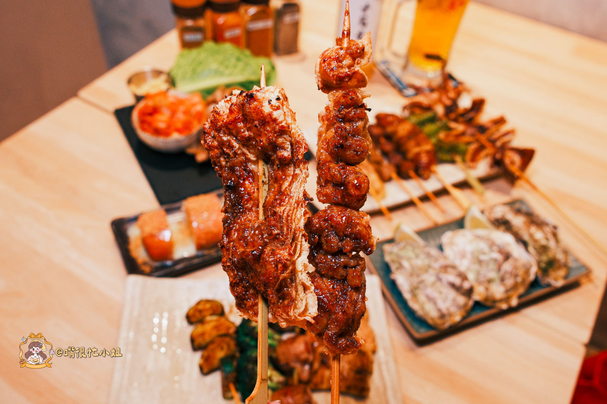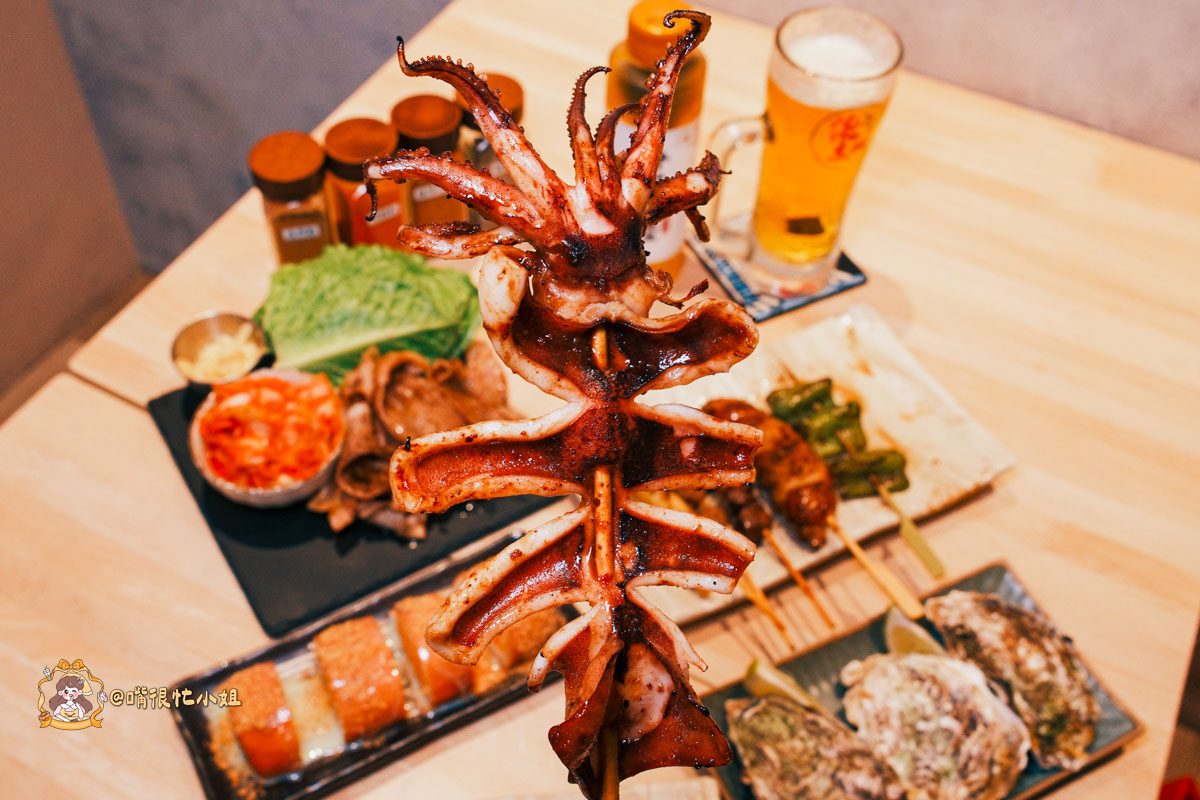門口是暖橘色燈光的木質外觀,走近就能聞到炭火香。店裡是開放式烤檯設計,可以看到師傅一串串地翻烤、刷醬,那畫面看了就餓。空間寬敞、座位數多,不論是朋友聚、家庭聚或公司下班聚會都很合適。